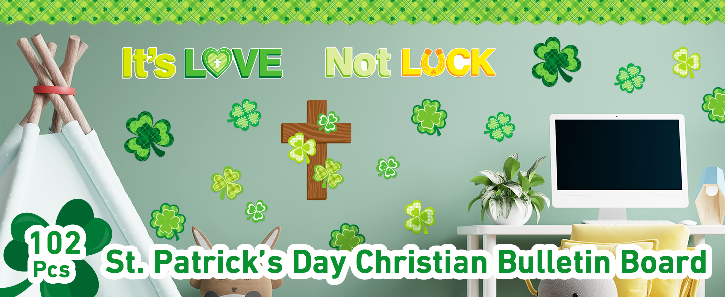 102 قطعة من لوحة الإعلانات المسيحية لعيد القديس باتريك، مجموعة شامروك وصليب الله، علامات اسم الحب وليس الحظ لعيد القديس باتريك، الإيمان الديني، مدرسة الأحد، سبورة الكنيسة، ديكور الحائط