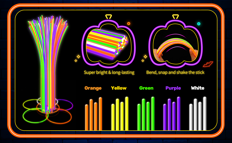 • يمكن استخدامه على نطاق واسع: بدءًا من الحفلات الموسيقية والمهرجانات والحفلات والحانات إلى الكرنفالات، فإن قلادة العصا المتوهجة الخاصة بنا قابلة للتطبيق على نطاق واسع في العديد من الأماكن؛ قم بإضاءة مناسبتك، والتي ستضيف إلى أجواء احتفالية الهالوين الخاصة بك وتجعلها عزيزة