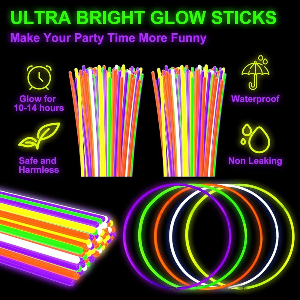 • ميزة التوهج في الظلام: مع ميزة التوهج في الظلام، يمكن لهذه العصي الطويلة المتوهجة أن تضيء ليلتك، لافتة للنظر وجميلة، سوف ينجذب ضيوفك إلى الألوان الزاهية التي تضيء المناطق المحيطة، لتترك لك ذكريات لا تنسى.