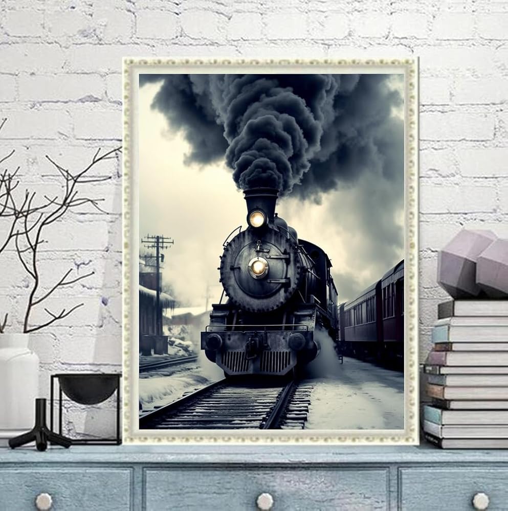 Pigpigboss قطار الرجعية الماس اللوحة مجموعات 5D الحفر الكامل الماس التطريز الفن، الحرف الخياطة عبر الابره مجموعات ديكور المنزل هدية للبالغين (11.8 × 15.7 بوصة)