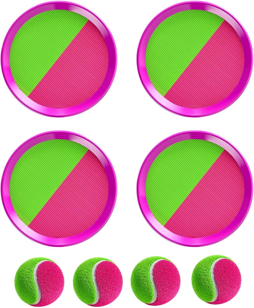 هدايا ألعاب تيمي الخارجية للأطفال بعمر 3 4 5 6 7 8 سنوات من الأولاد والبنات، مجموعة كرات القذف والالتقاط مع 4 مجاذيف و4 كرات، ألعاب الشاطئ ألعاب خارجية ألعاب ساحة ألعاب خارجية لعمر 3 4 5 5 6 سنوات للأولاد والبنات والأطفال