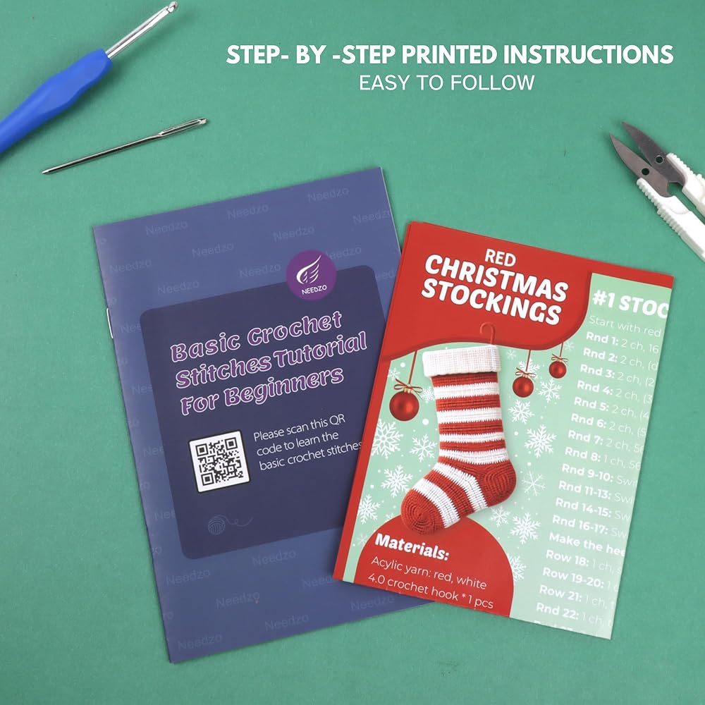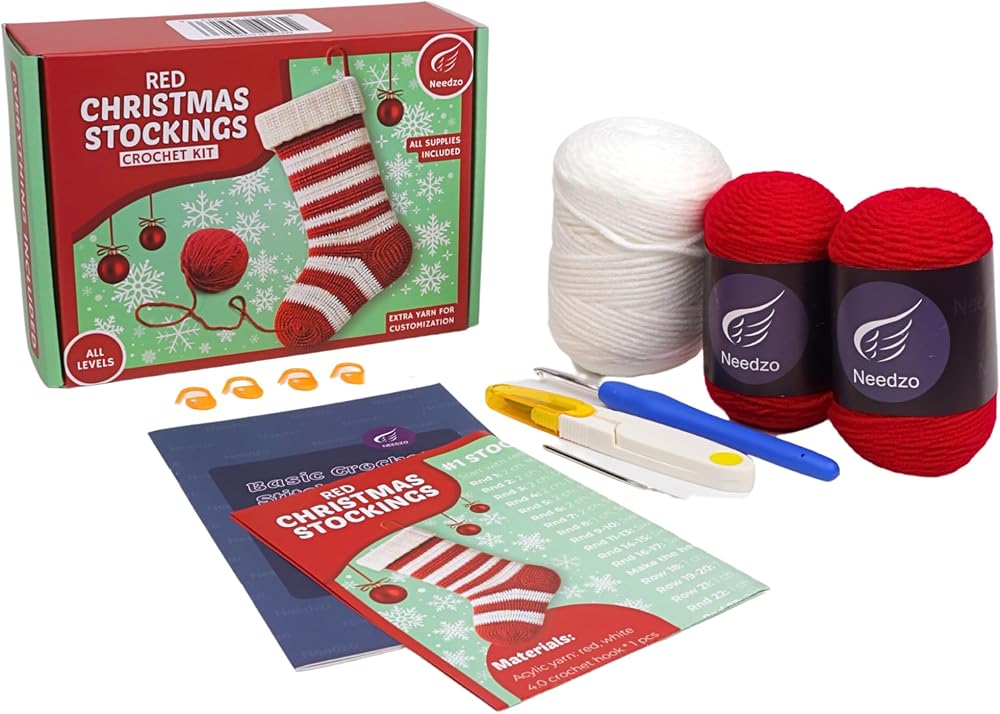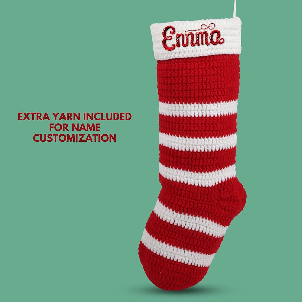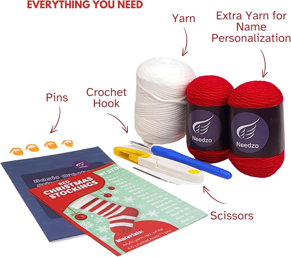 طقم كروشيه لعيد الميلاد باللون الأحمر، مجموعة بداية حياكة Amigurumi Craft DIY، دروس فيديو خطوة بخطوة وتعليمات مطبوعة، غزل إضافي للاسم