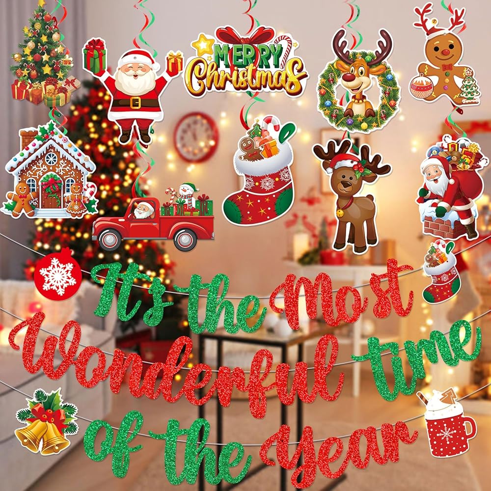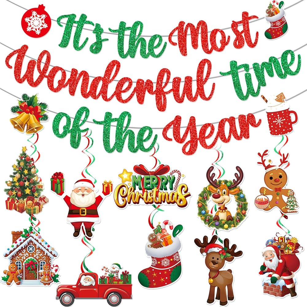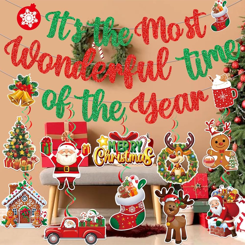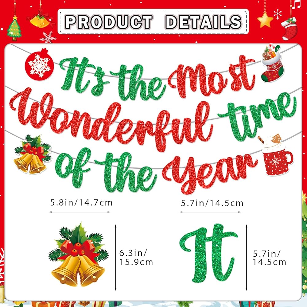 تشمل العبوة: 1*لافتة عيد الميلاد "It's the Most Wonderful Time of the Year"، 10*زخارف دوامات معلقة لعيد الميلاد، مع 10 ورق مقوى مصمم، 5*دوامات فضية 5*دوامات حمراء.