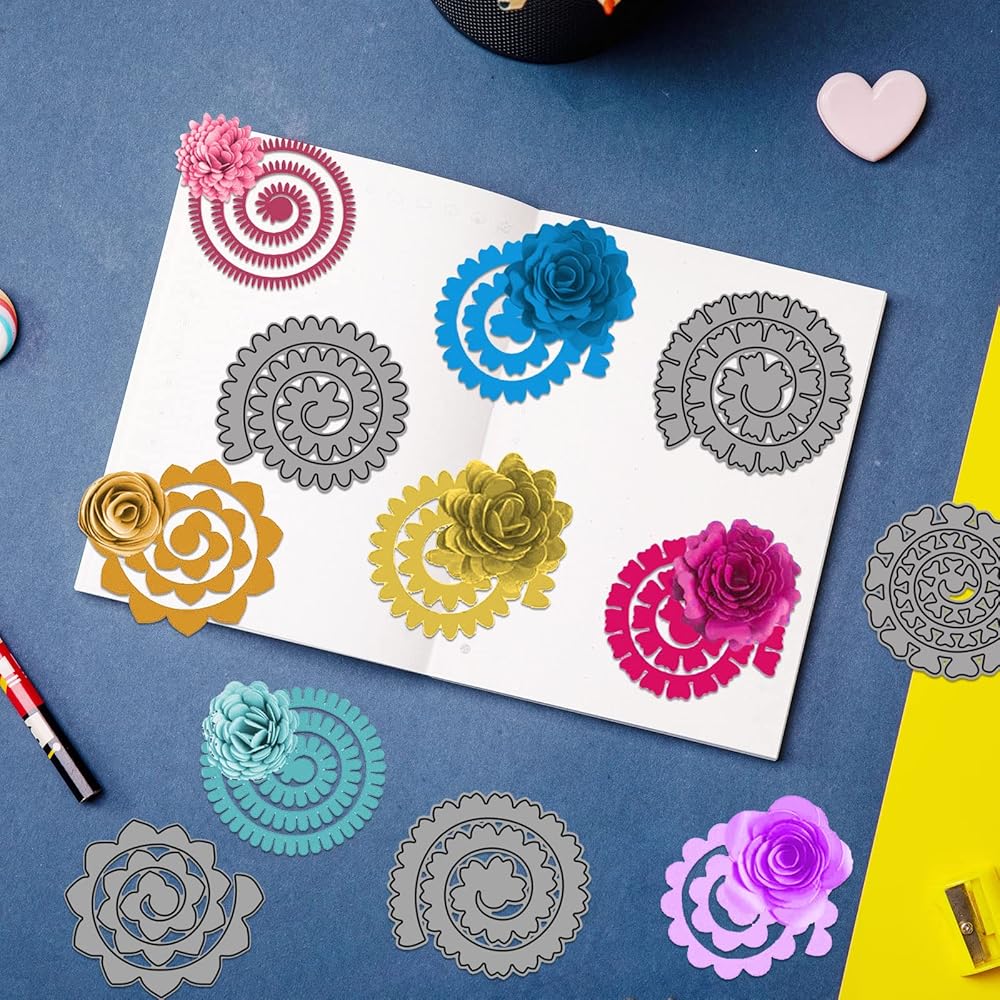10 قطع من قوالب قطع الزهور الحلزونية ثلاثية الأبعاد، قوالب زهور ورقية معدنية صغيرة، بطاقة صور سكرابوكينغ لصنع قالب النقش قالب استنسل قطع الفنون والحرف اليدوية قالب القالب