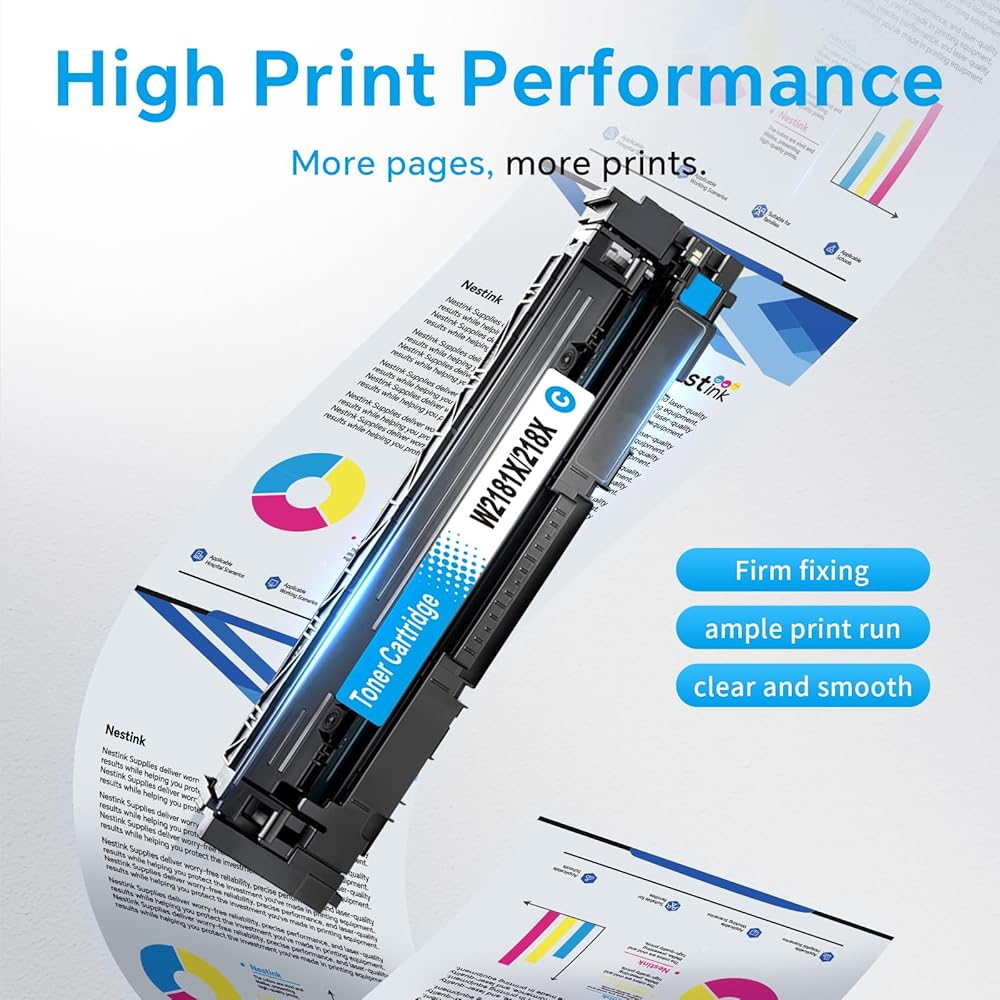 خرطوشة حبر بديلة 218X عالية الإنتاجية لـ HP 218X/218A متوافقة مع HP Color Laser Jet Pro 3201dw MFP 3301cdw MFP 3301fdw MFP 3301sdw W2180X W2181X W2182X W2183X (بدون شريحة) (4 BK/Y/C/M)
