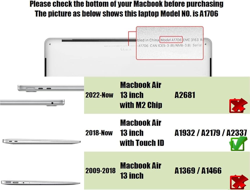 متوافق مع Macbook Air 13 بوصة موديل A2337/A1932/A2179 مع معرف اللمس وشاشة Retina 2018/2019/2020/2021/2022/2023/2024 إصدار الإصدار فقط. غير متوافق مع طراز MacBook الآخر.