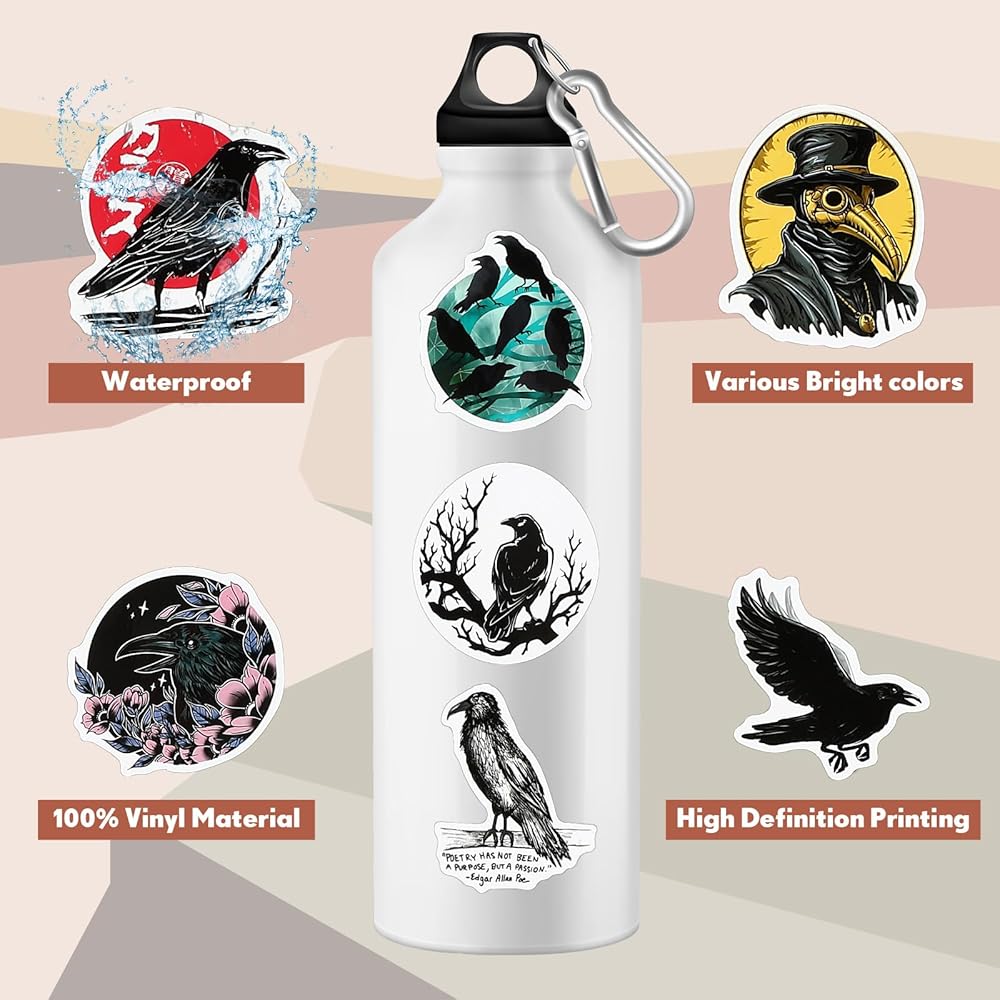 Reliable Material: the raven stickers are made of waterproof vinyl material; Even in humid environments, the stickers can maintain clarity and stickiness and are not easy to fall off; This material not only ensures the service life of the sticker, but also allows you to use it in various environments with confidence