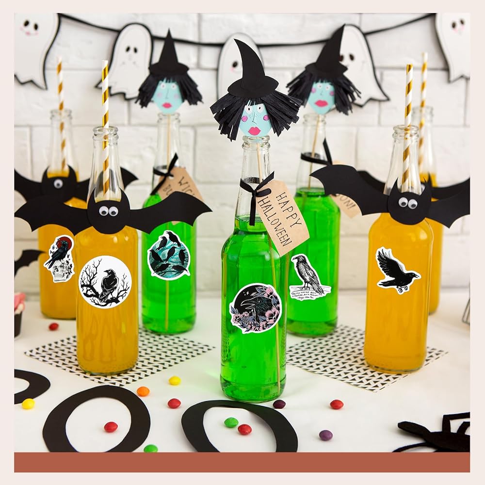 Colarr 96 قطعة ملصقات الغراب ملصقات الهالوين ملصقات الطيور الغراب ملصقات جرافيتي رائعة من الفينيل مقاومة للماء ملصقات الطيور العصرية لزجاجة المياه والدراجات النارية ولوح التزلج والكمبيوتر المحمول وشارات الأمتعة
