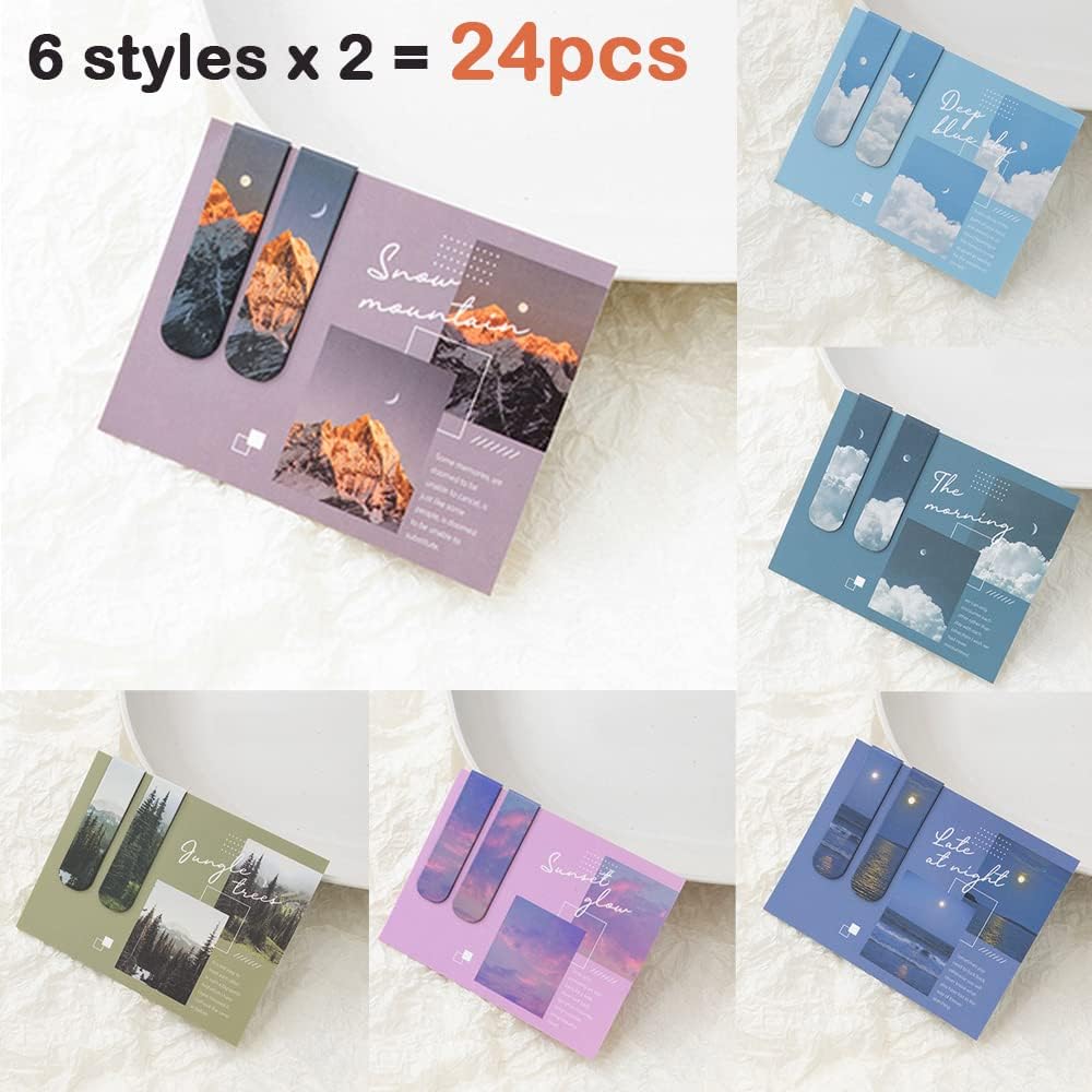 24 قطعة من الإشارات المرجعية، علامات الكتب المغناطيسية، علامات مرجعية مغناطيسية للمناظر الطبيعية، علامات صفحة مغناطيسية، مجموعة متنوعة من علامات الكتاب للطلاب القراءة (QS101)