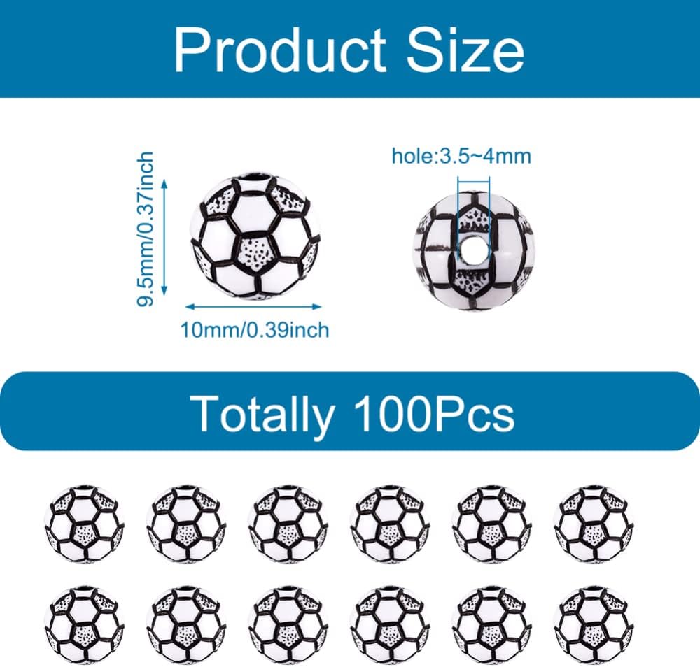 【ما تحصل عليه: سوف تحصل على 100 قطعة من خرز الأكريليك لكرة القدم، كمية كافية لاحتياجاتك اليومية من الديكور والمجوهرات.