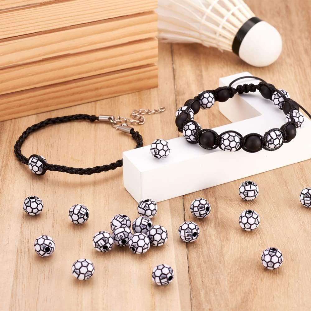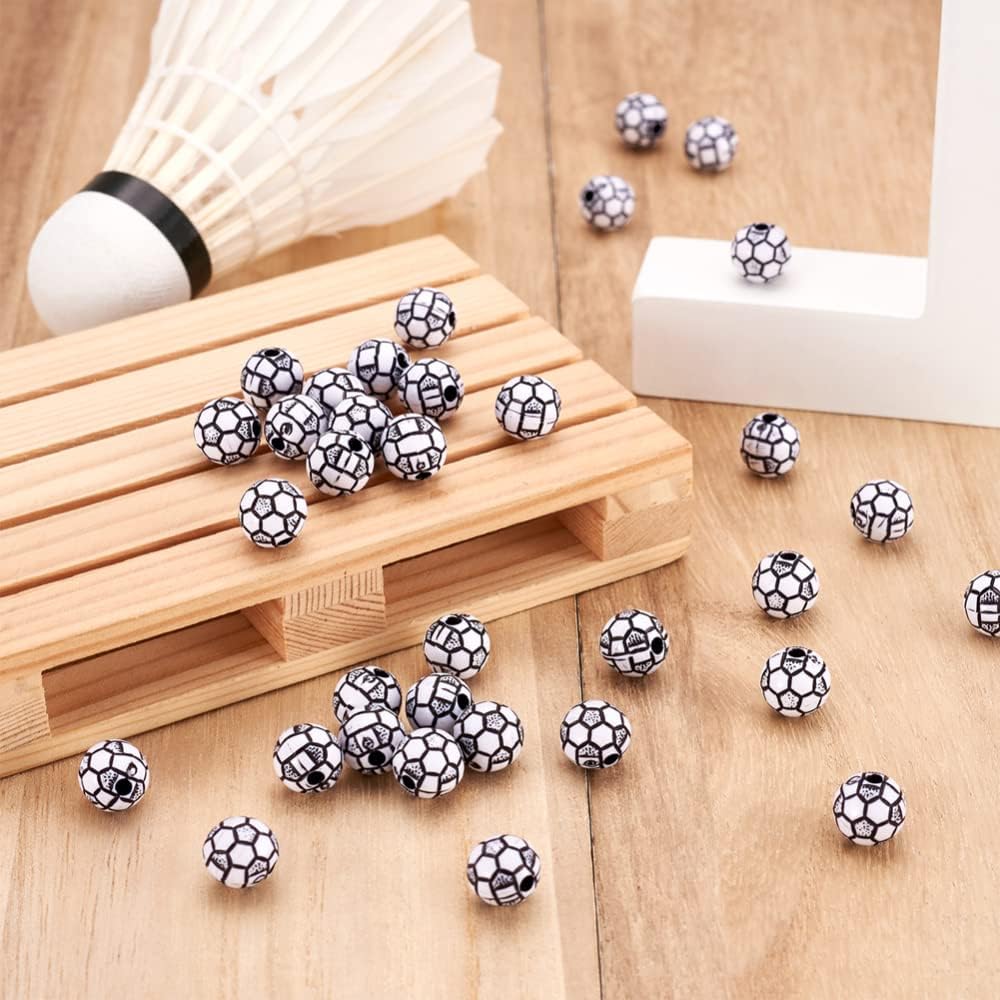 100 قطعة من خرز الأكريليك غير الشفاف بنمط الحرف اليدوية، خرز أكريليك لكرة القدم، خرز كرة القدم، خرز فاصل لقلادة سوار ذاتي الصنع، سلسلة مفاتيح، مجوهرات يدوية، فتحة 2 مم