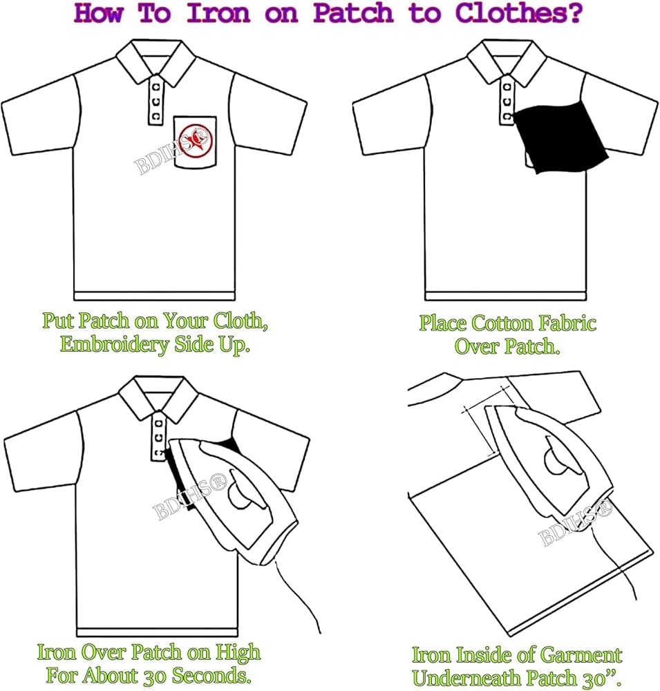 This patch is well stitched embroidery,with hot melt adhesive on the back, making it just 15 30 seconds to iron on or sew on to any garment,it stays in place and maintain their color even after washing.
