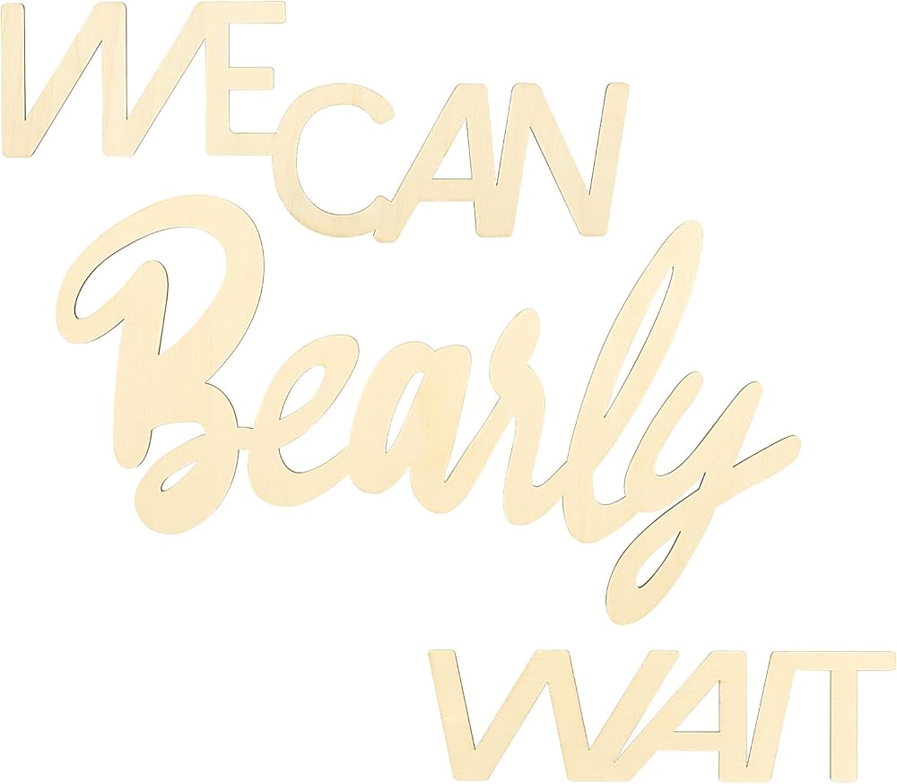 علامة We Can Bearly Wait Sign، لافتة استحمام الطفل خلفية ديكورات غير مكتملة، لافتة خشبية مقطوعة من الخشب للكشف عن الجنس، ديكور خلفية للحفلات للفتيات/الصبي