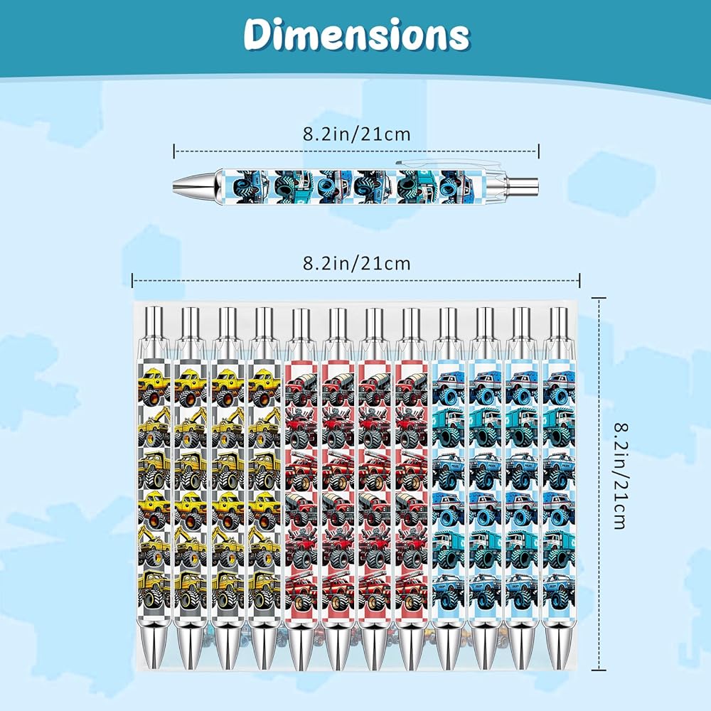 【 الكمية القابلة للمشاركة 】3 تصميمات × 4 لكل قطعة = إجمالي 12 قلمًا في كل عبوة. هدايا رائعة في الفصل الدراسي وفي مهرجانات الكنيسة والكرنفالات وحفلات أعياد الميلاد التي تحمل طابع الشاحنات!