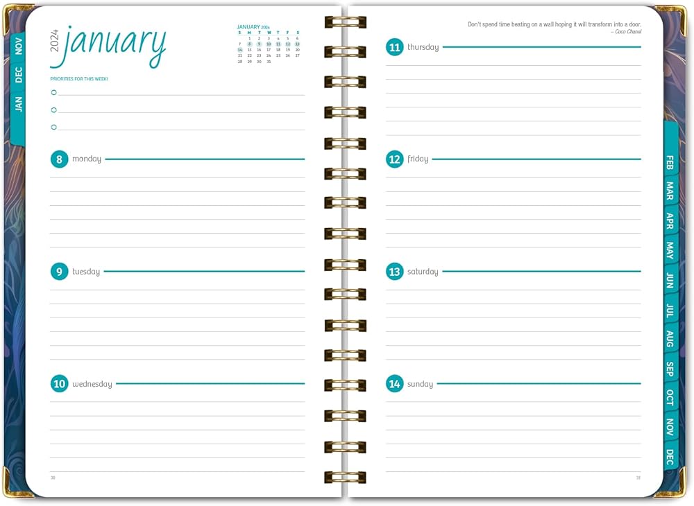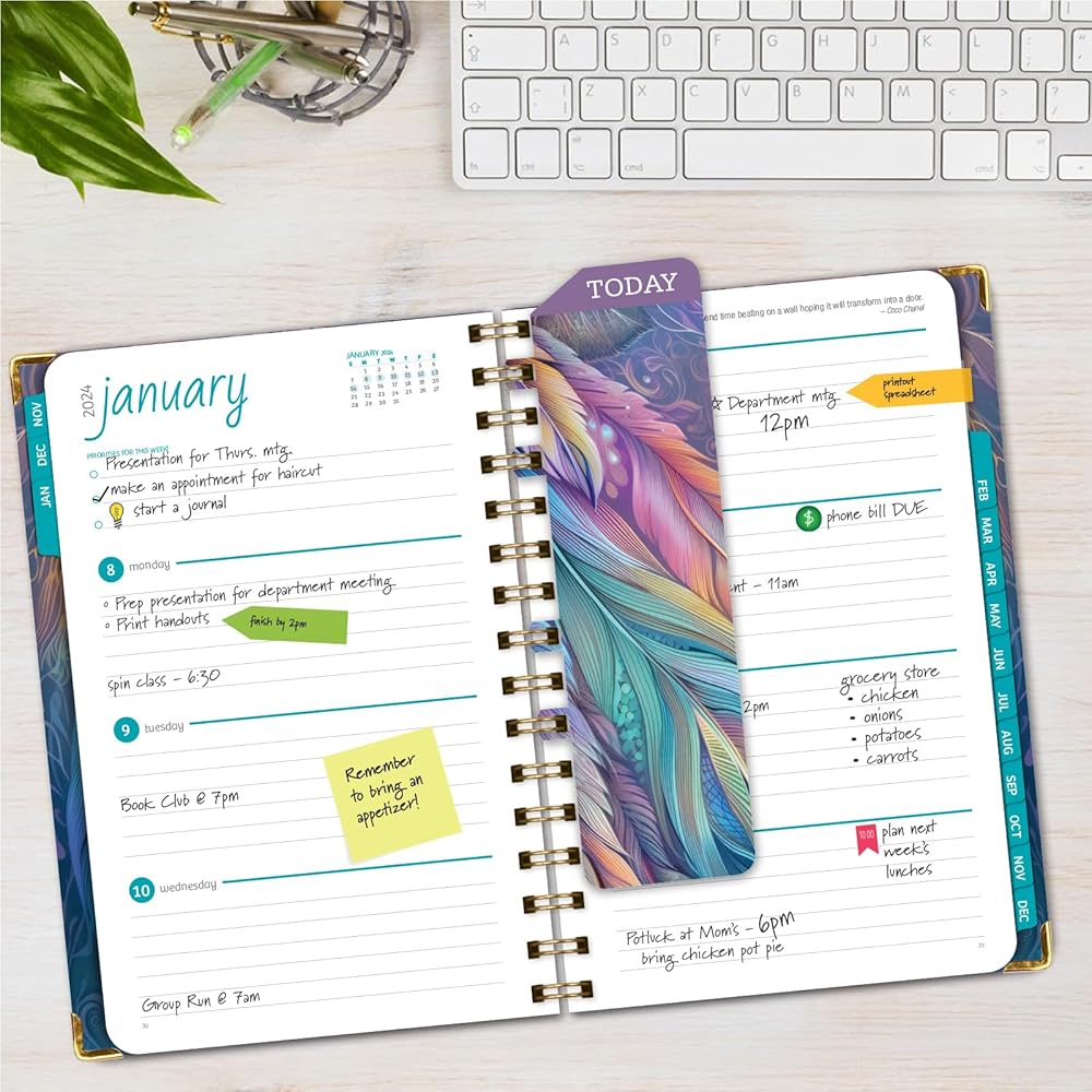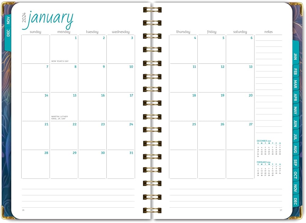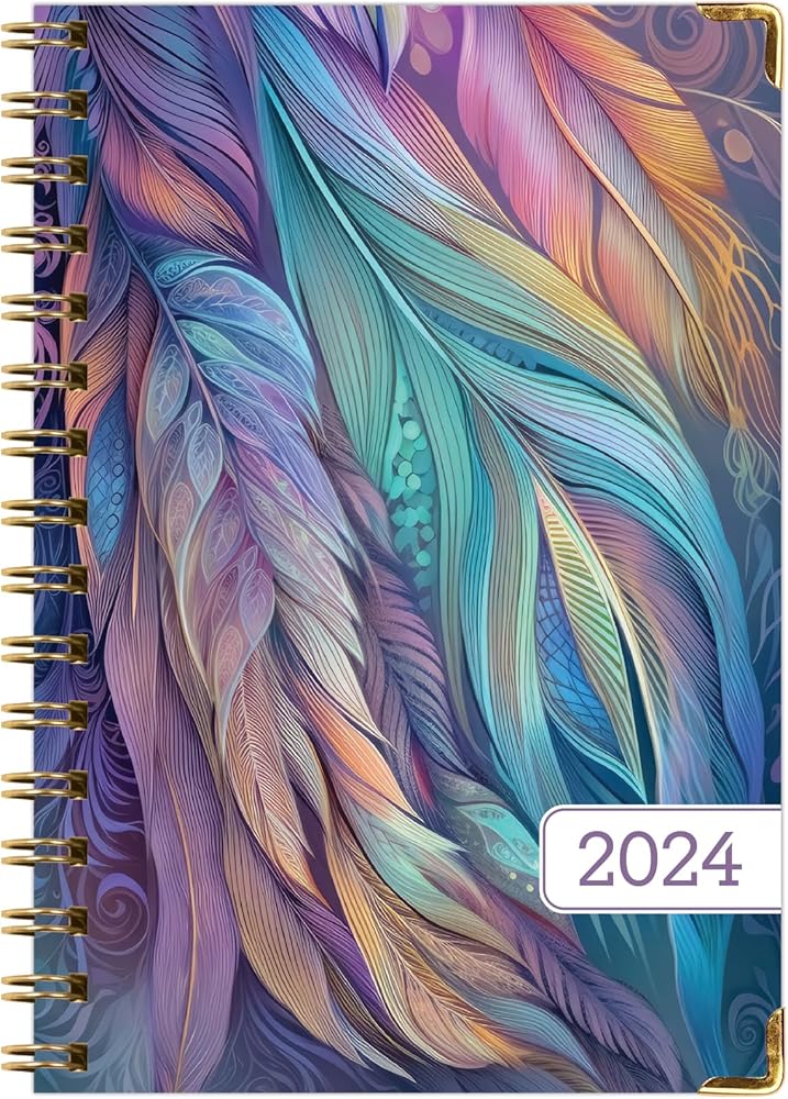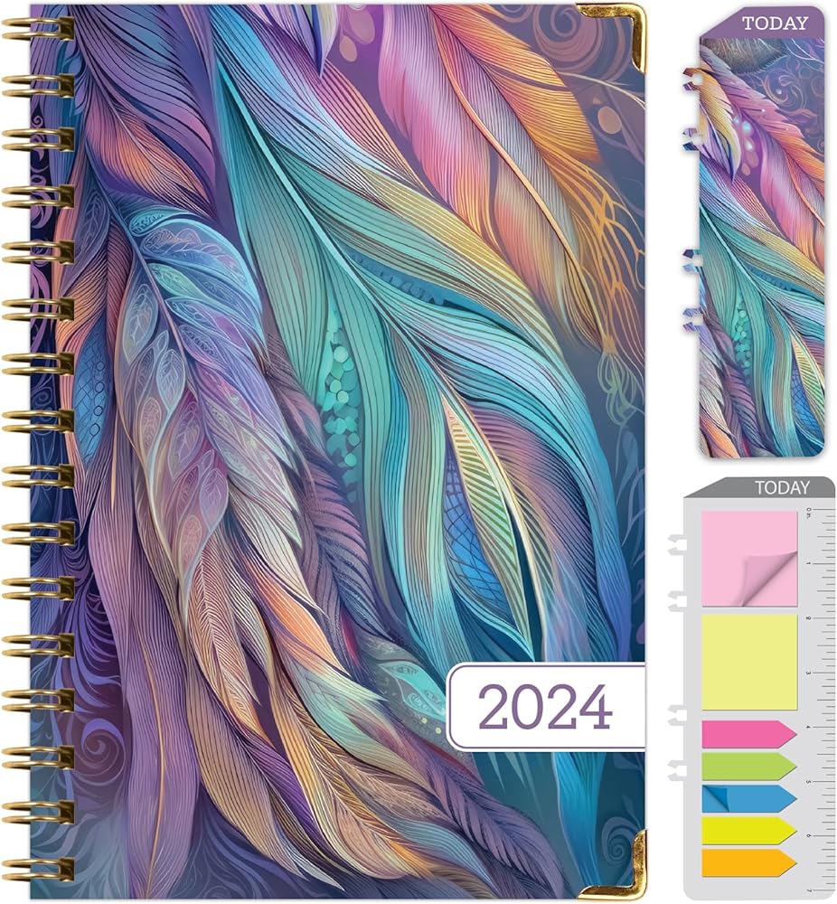 مخطط غلاف فني 2024: (نوفمبر 2023 حتى ديسمبر 2024) 5.5 بوصة × 8 بوصة مخطط يومي أسبوعي شهري وجدول أعمال سنوي. مجموعة الإشارة المرجعية ومجلد الجيب والملاحظات اللاصقة (باستيل الطاووس)