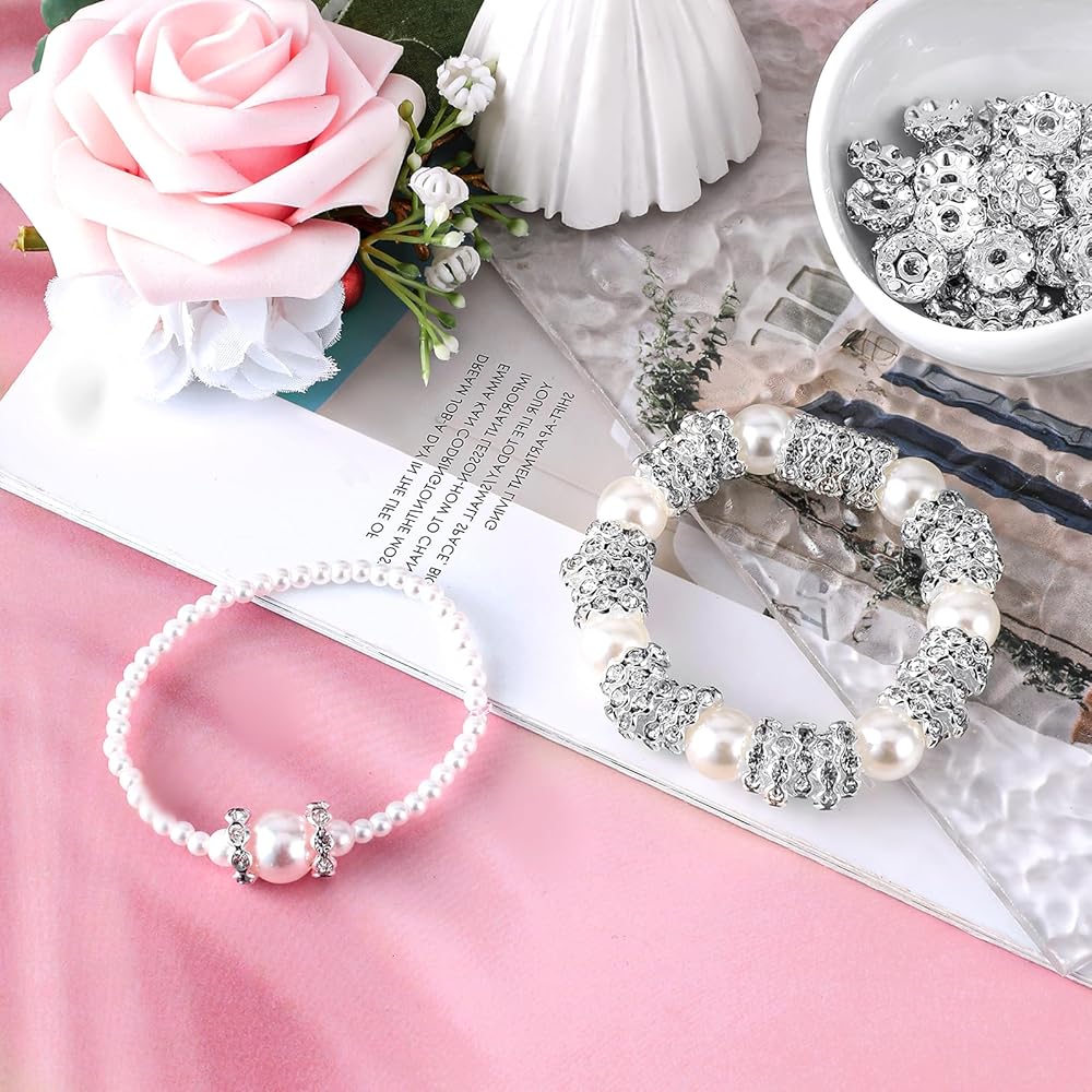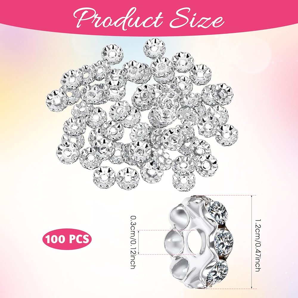 【High-quality Material】Each rhinestone bead is crafted in matel inlaid with rhinestones inlaid in a circle, which is not easy to fall off. The color sparkles like a diamond. The surface is polished smooth and is friendly to the skin. It can be used safely. Crafted with precision and attention to detail, our rhinestone spacer beads are made from high-quality materials to ensure durability and long-lasting shine.