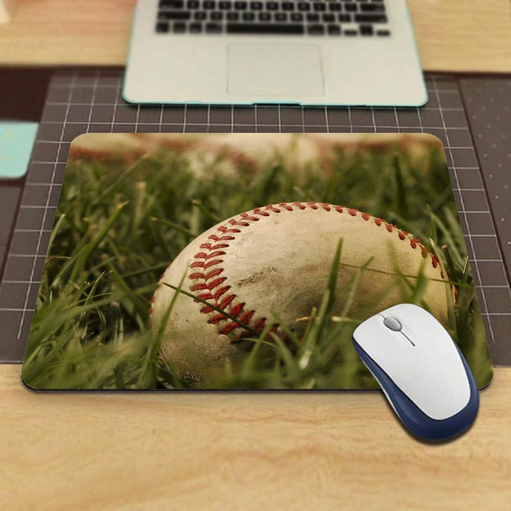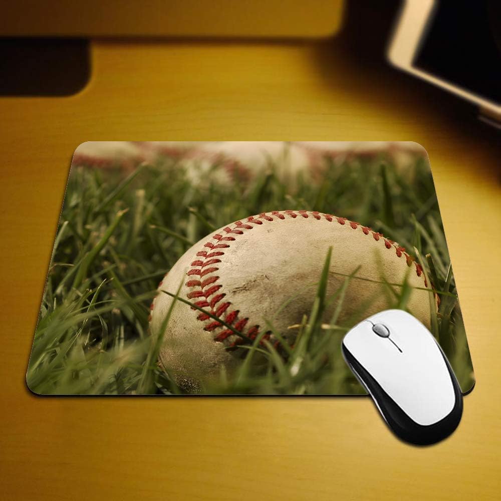 لوحة ماوس للألعاب البيسبول في العشب على الملعب لوحة ماوس مطاطية غير قابلة للانزلاق لأجهزة الكمبيوتر والكمبيوتر المحمول والمكتب والمنزل لوحة ماوس مخصصة مستطيلة مقاس 9.5 بوصة × 7.9 بوصة