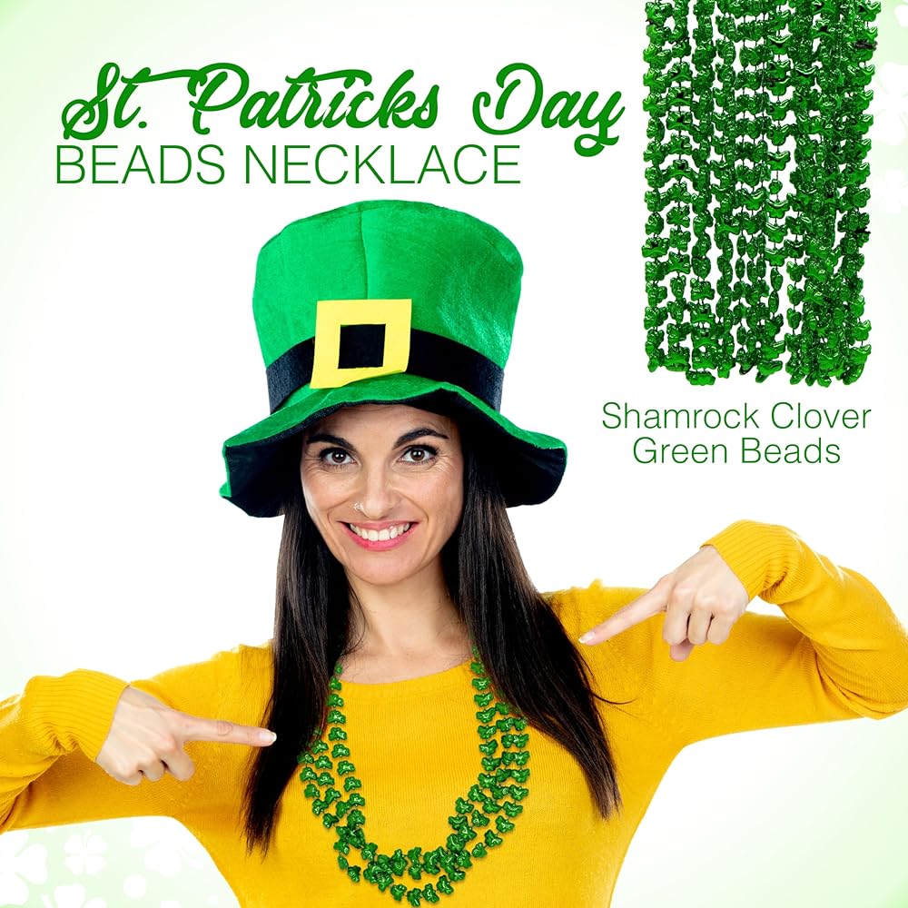 قلادة عيد القديس باتريك. تتضمن هذه التشكيلة أنماطًا كافية لإرضاء جمهور كبير! رائعة كهدية للحانات والمكاتب، أو ضعها في أوعية أو قم بتسليمها لحفلات ومناسبات عيد القديس باتي! هذه هدايا كلاسيكية لحفلات عيد القديس باتريك