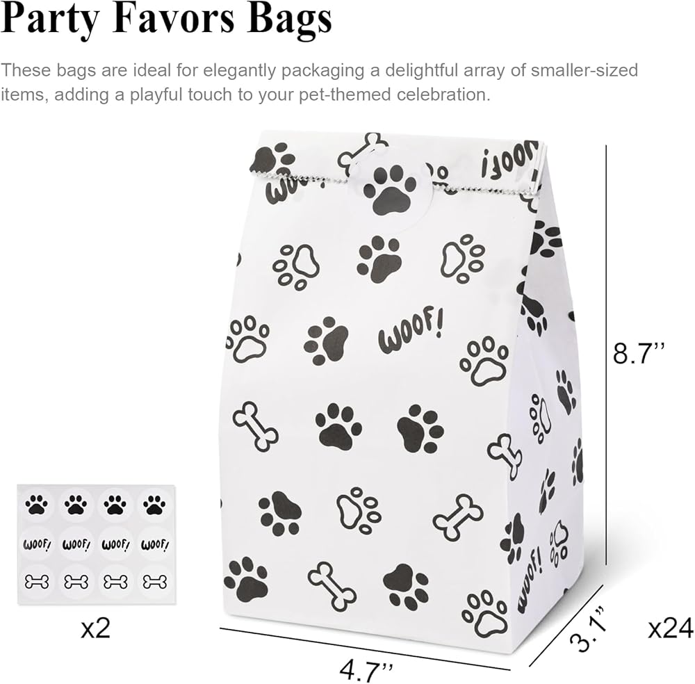 ما تحصل عليه - تتضمن هذه المجموعة 24 حقيبة مفضلة للحفلات، مقاس كل منها 4.7 بوصة × 3.1 بوصة × 8.7 بوصة. هذه الحقائب مثالية لتغليف مجموعة مبهجة من العناصر الصغيرة الحجم بشكل أنيق، مما يضيف لمسة مرحة إلى موضوع حيوانك الأليف. احتفال.