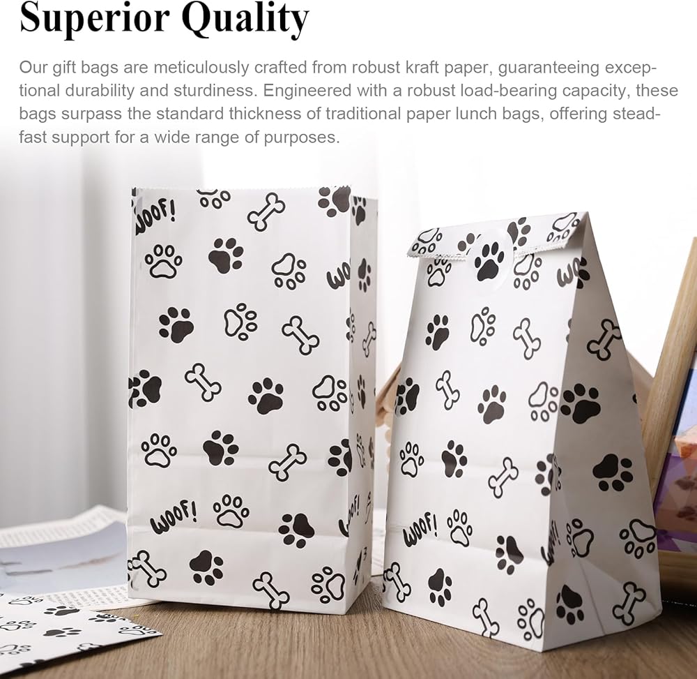 استخدام واسع - حقائب الهدايا متعددة الاستخدامات لدينا مصممة خصيصًا للحرف والأنشطة اليدوية للأطفال، وتتميز بتصميمات مرحة بطباعة مخالب. مثالية لتخزين الوجبات الخفيفة والحلوى والخبز والألعاب والبسكويت ومجموعة متنوعة من الكنوز الأخرى، فهذه الحقائب الورقية ضرورية لإضافة المرح والعملية إلى أي مناسبة.