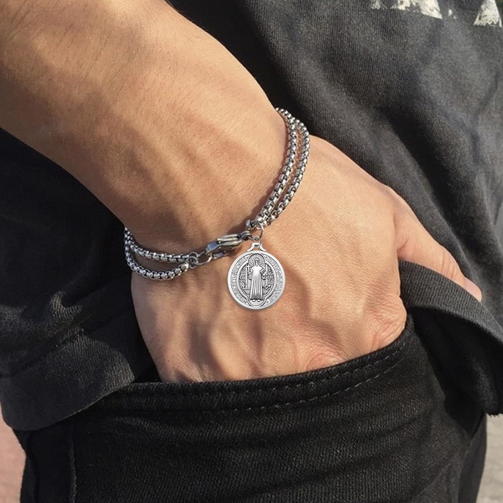 هدايا مبتكرة: هذه القطعة من المجوهرات الدينية المصنوعة من ميدالية القديس بنديكت هي الهدية المثالية للأب والزوج والصديق. امنح وسام نعمة المنزل هذا لنفسك أو لأحبائك في مناسبة خاصة أو عطلة مثل عيد الأب، أو شراء منزل جديد، أو تدفئة المنزل، أو التأكيد، أو المناولة الأولى، أو بلوغ سن الرشد، أو أعياد الميلاد أو الذكرى السنوية.