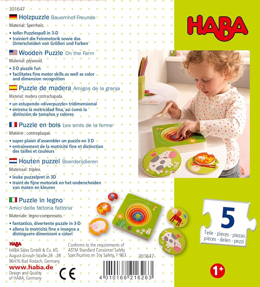 • This exceptional wooden puzzle from HABA contains 1 puzzle board and 5 puzzle discs.