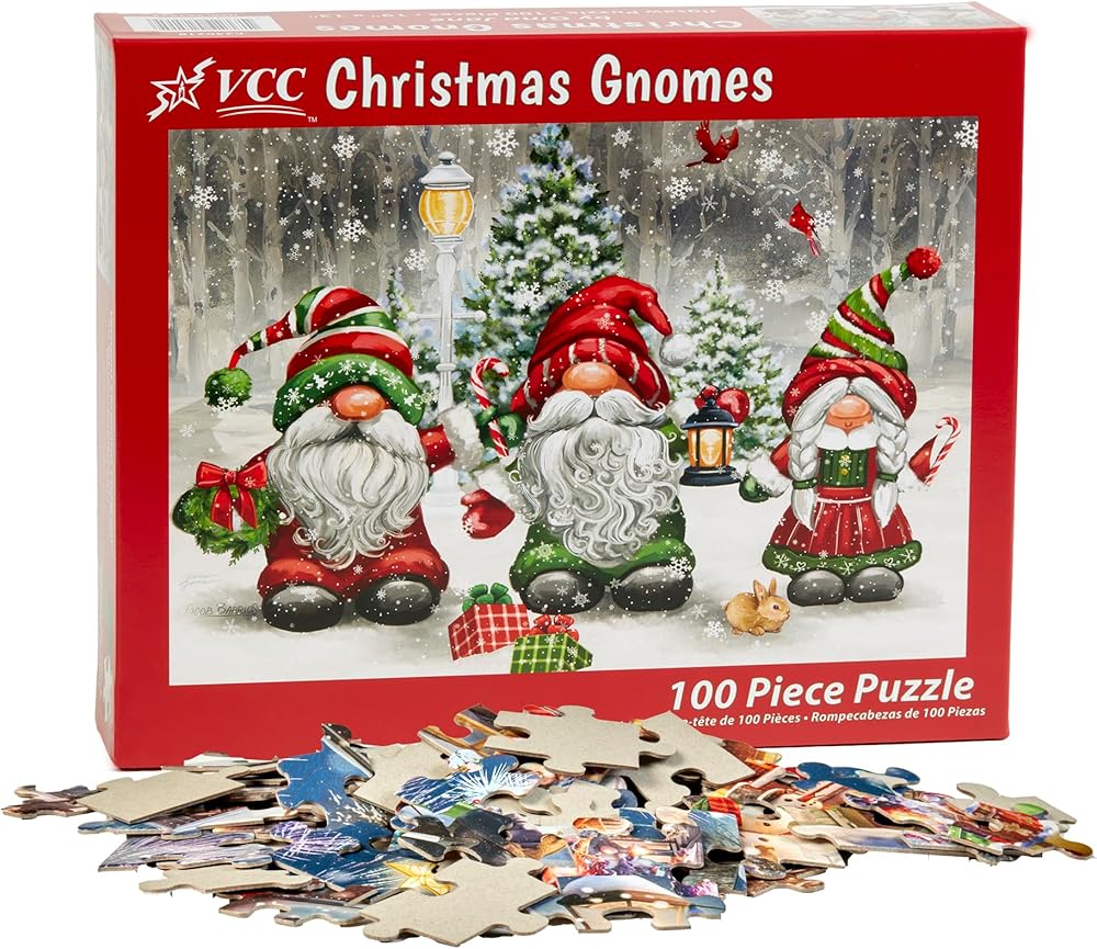 شركة فيرمونت كريسماس - أحجية الصور المقطوعة لأقزام الكريسماس 100 قطعة - قطع كبيرة متشابكة مثالية للأطفال والكبار على حد سواء - 48.26 سم × 33.02 سم