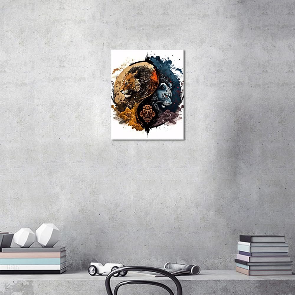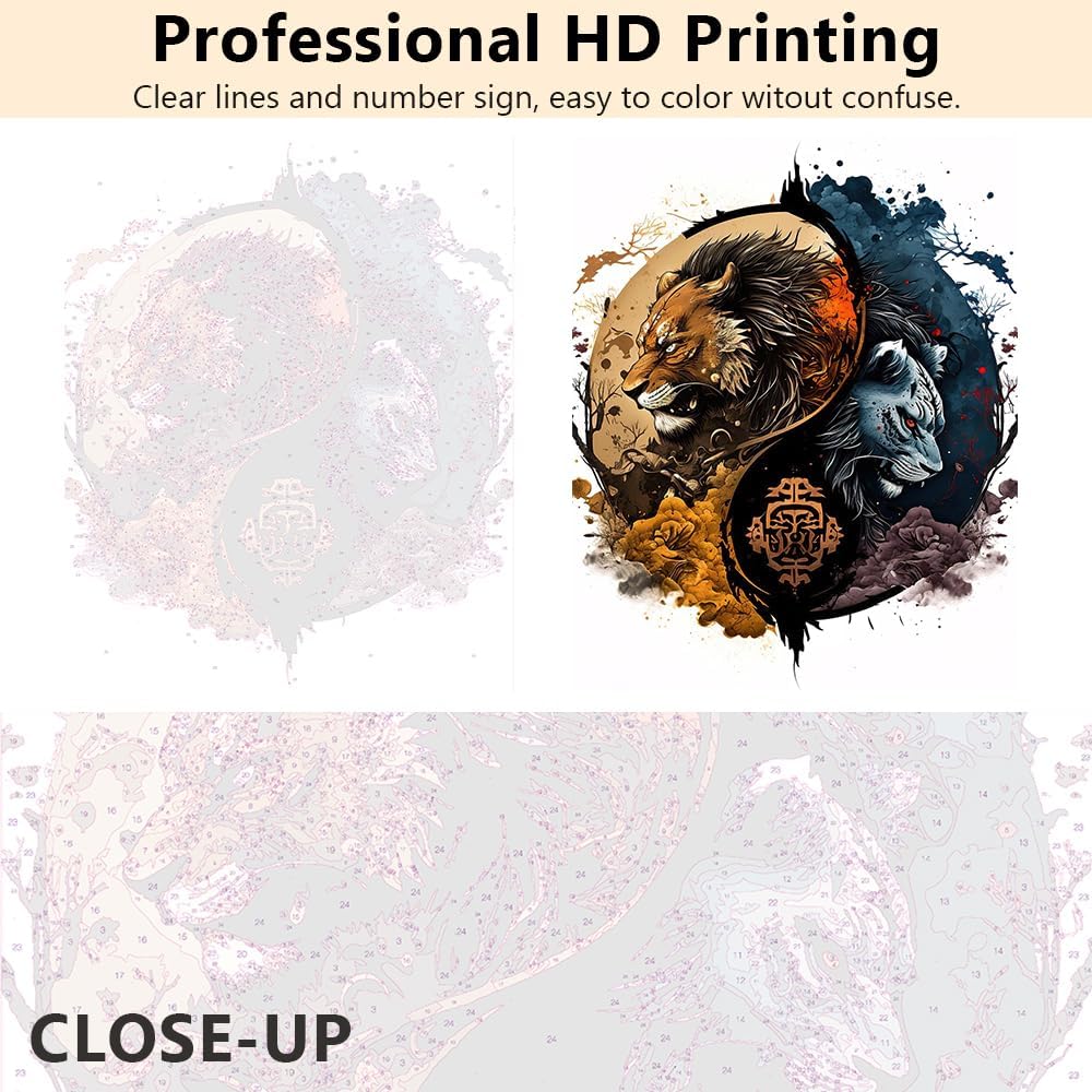 TUMOVO الطلاء بالأرقام للبالغين والأطفال الأسد والبؤة في ضوء القمر للبالغين مجموعات الطلاء بالأرقام يين يانغ الأكريليك مع فرش الحرف الفنية للرسم الزيتي 16 × 20 بوصة