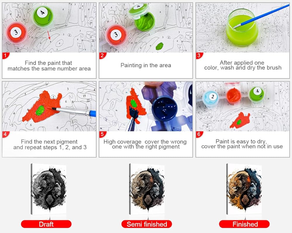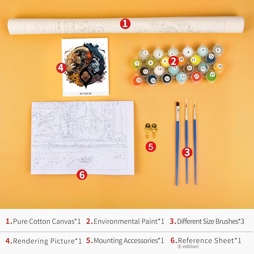 🎨 مجموعة الطلاء بالأرقام: تتضمن لوحة قماشية مقاس 40.64 سم × 50.8 سم (بدون إطار)، و3 فرش رسم، ومجموعة واحدة من ألوان صبغة الأكريليك وعينة من الصورة. ستجعلك مجموعات الطلاء بالأرقام تشعر بالسحر والمرح فن.