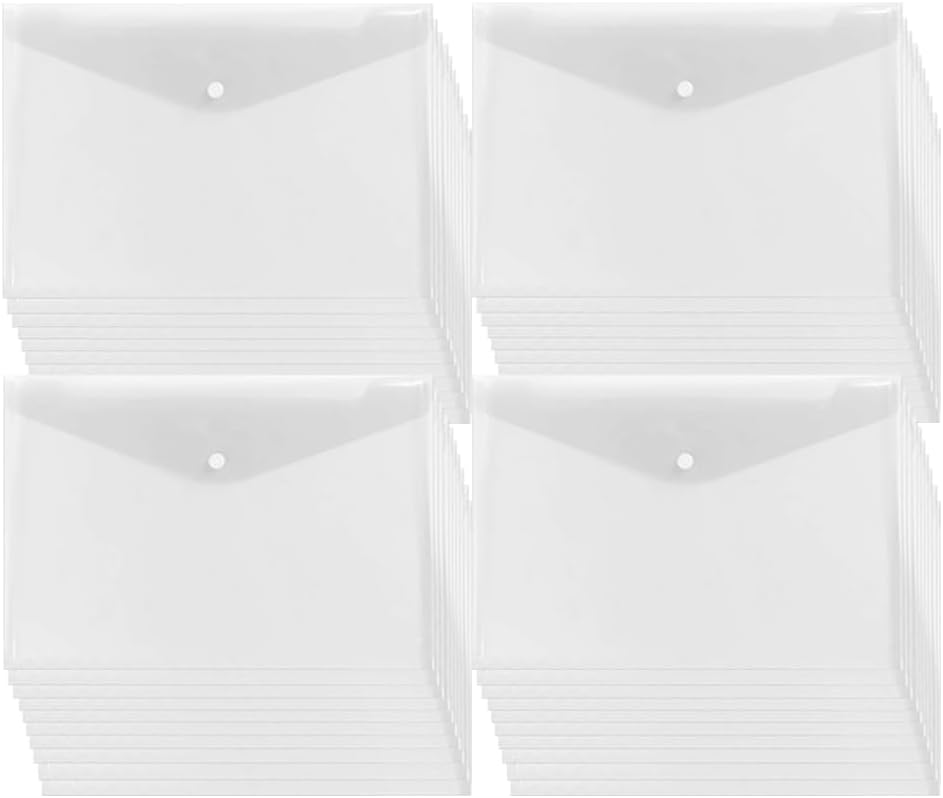 تصميم بزر كبس وجيب للملصق: حقيبة مستندات شفافة عالية الجودة مع زر كبس، مناسبة جدًا لتخزين ورق بحجم letter/A4 الأمريكي وغيرها من الأشياء الصغيرة. تحتوي مظاريفنا البلاستيكية على جيب للملصقات لتمييز المستندات بسهولة
