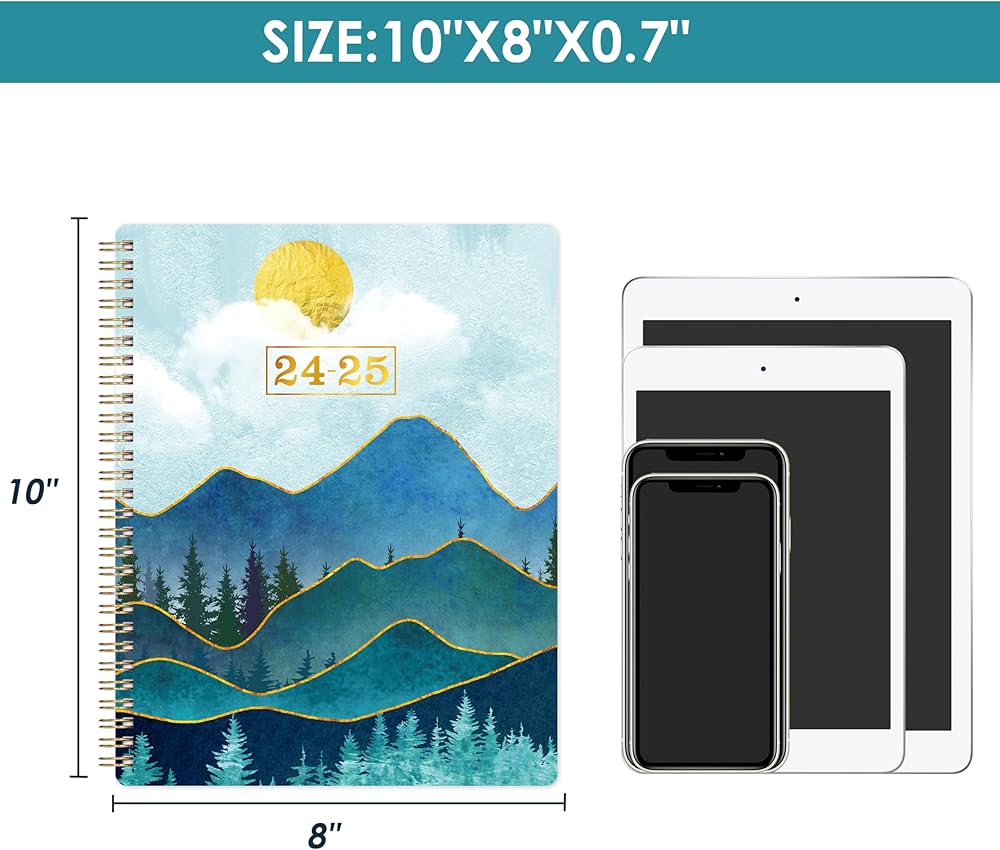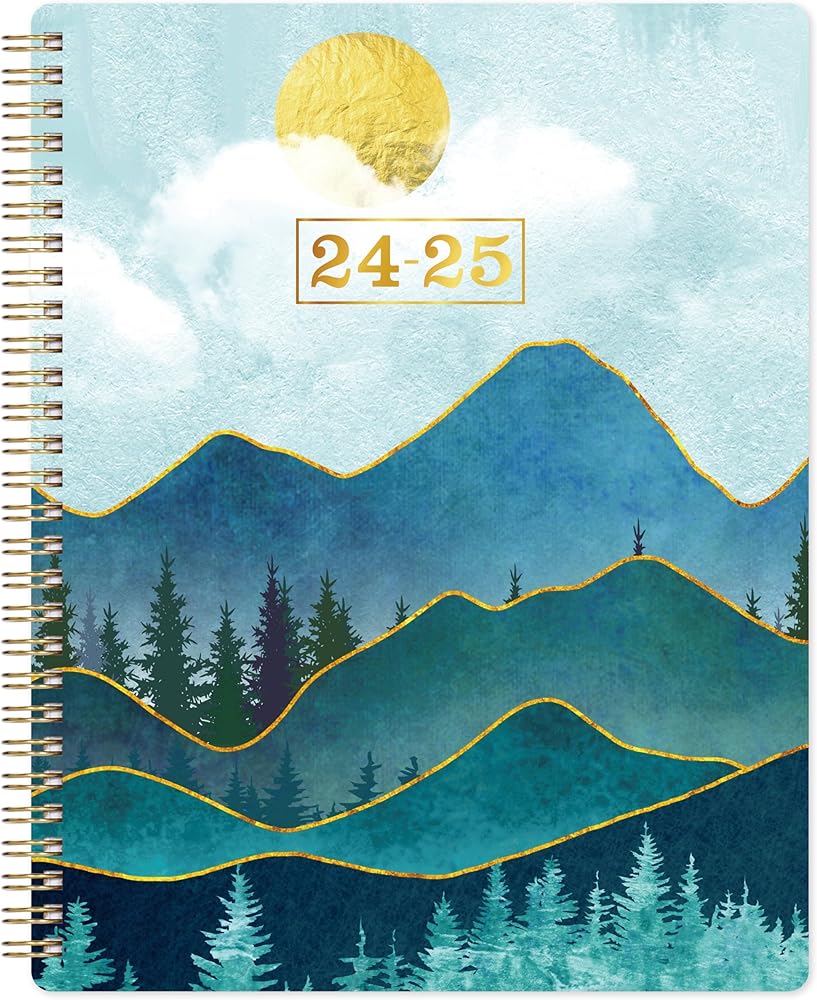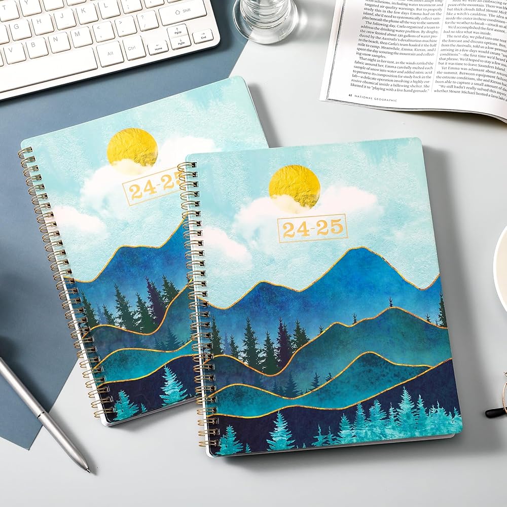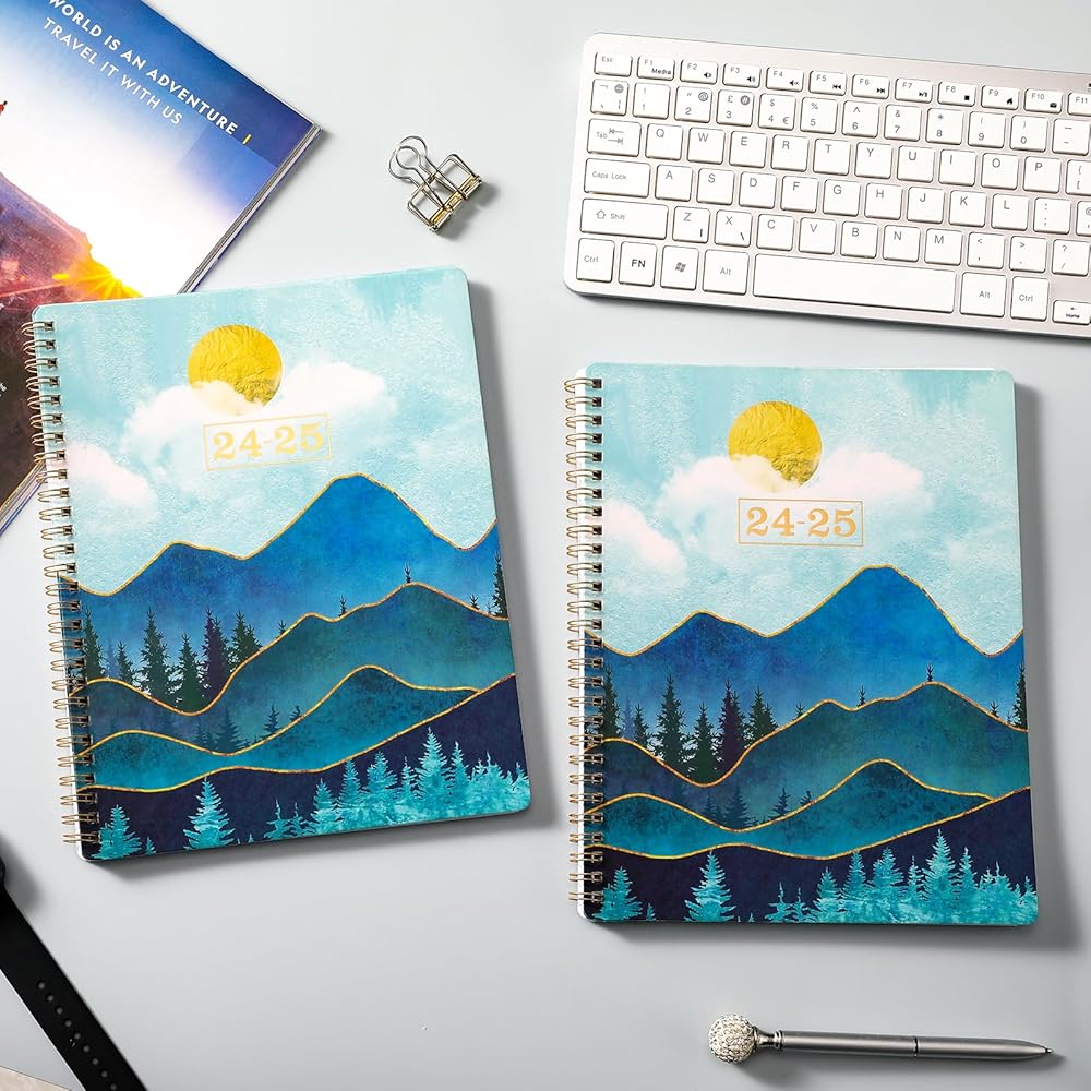 🌲 جودة فائقة - ورق أكثر سمكًا من المخطط الأكاديمي العادي 2024-2025 في السوق لتقليل تسرب الحبر ومحو الاهتراء ومشاكل الظل + تنظيم حياتك بأناقة مع هذا المخطط الملون الأنيق والرائع.