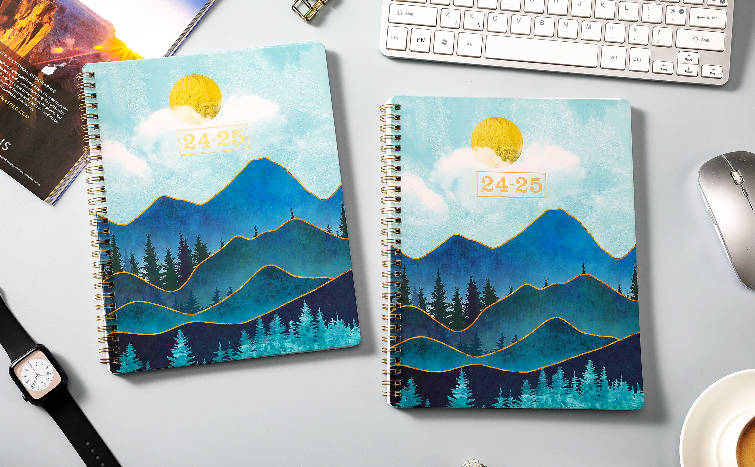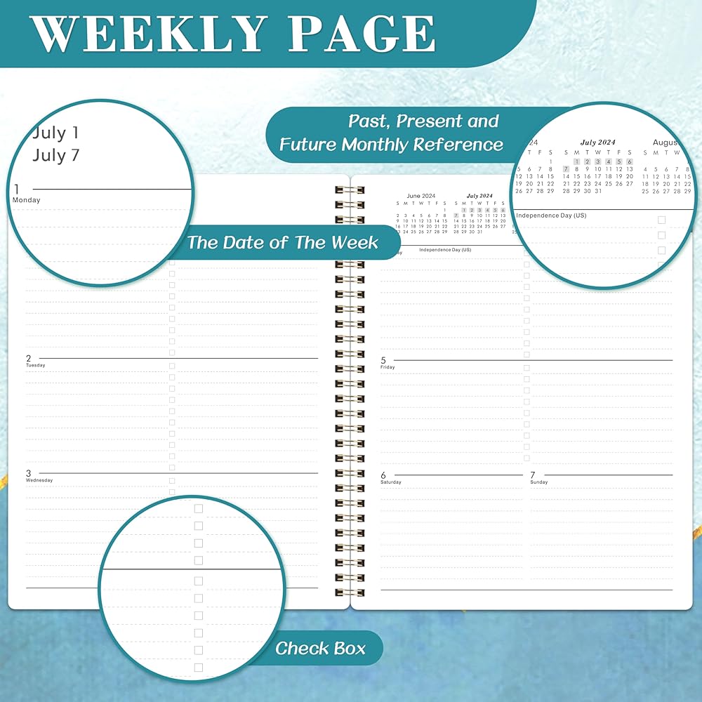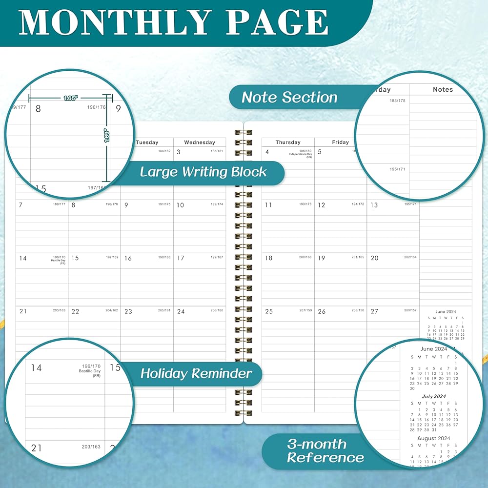 🌲 جودة فائقة - ورق أكثر سمكًا من المخطط الأكاديمي العادي 2024-2025 في السوق لتقليل تسرب الحبر ومحو الاهتراء ومشاكل الظل + تنظيم حياتك بأناقة مع هذا المخطط الملون الأنيق والرائع.