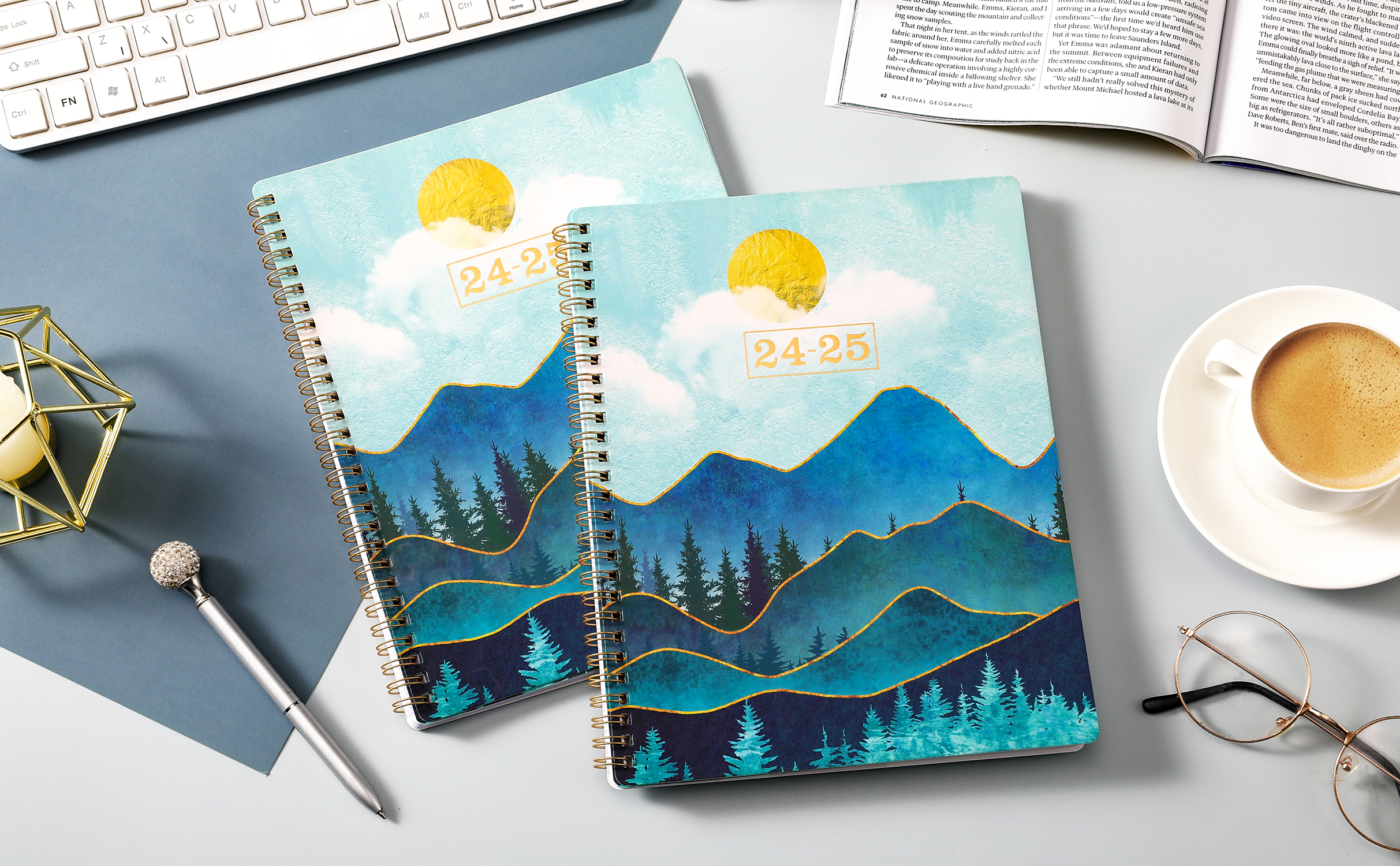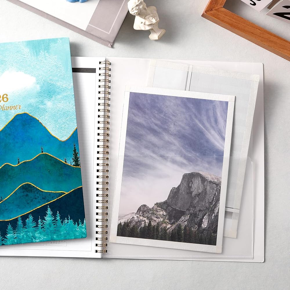 🌲 تفاصيل عملية - يسمح الربط المعدني المسطح ذو السلك المزدوج بالفتح في صفحة واحدة + يتميز بـ 12 علامة تبويب شهرية للفحص السريع + الرجوع إلى الماضي والمستقبل في الصفحة الشهرية + إضفاء الطابع الشخصي على توقيعك على صفحة العنوان الإضافية.