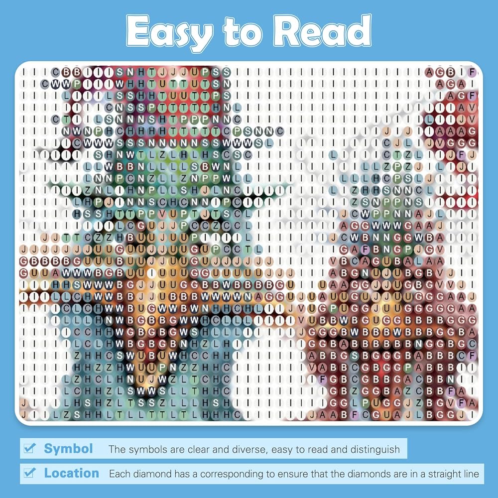【رموز سهلة القراءة】☛ من أجل جعل عملية جعل اللوحة الفنية الماسية أكثر إثارة للاهتمام وسهلة، نستخدم رموزًا ورسومات مختلفة لتمييز مناطق الألوان المختلفة، والقماش السميك عالي الدقة، ومناطق الرسم الأكبر، حتى البالغين. ومن السهل البدء بالمبتدئين