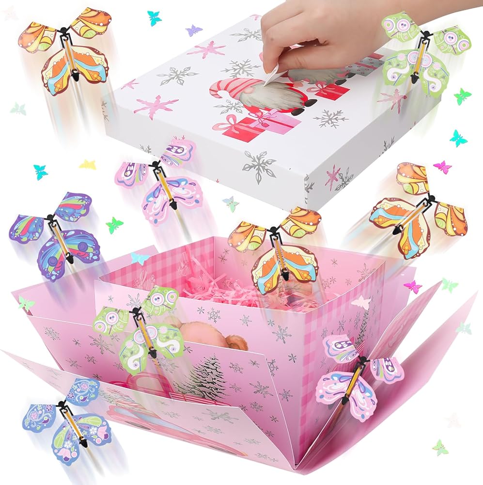 تشمل العبوة: تحتوي العبوة على قطعة واحدة من صندوق هدايا انفجار مربع بطابع عيد الميلاد، و10 قطع من ألعاب الفراشة الطائرة بخمسة ألوان، وقطعة واحدة من بطاقات التهنئة بطابع عيد الميلاد، وقطعتين من القصاصات ذات طابع الفراشة، وقطعة واحدة من التعليمات. قم بتجميع هذه الملحقات، وسوف تحصل بالتأكيد على مفاجأة، من شأنها أن تجعل حفلة عيد ميلادك لا تنسى بشكل مذهل