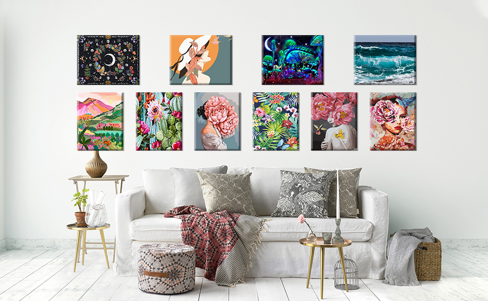 • 🎨 هدية مثالية: طلاء الأكريليك DIY هو هدية مثالية للآباء والأصدقاء والعشاق وأعياد ميلاد الأطفال وعيد الحب وحفلات الزفاف وما إلى ذلك. بعد الانتهاء من الطلاء بالرقم، سيكون ديكورًا رائعًا للحائط.