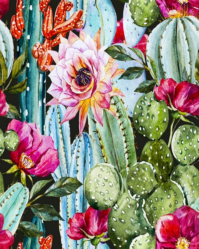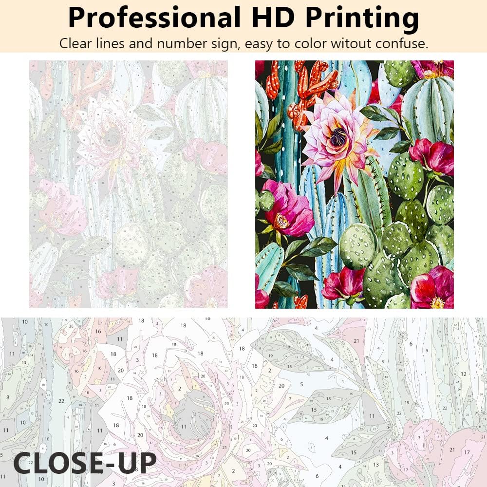 طلاء الصبار بالأرقام للبالغين المبتدئين، مجموعة طلاء رقمي للرسم الزيتي على القماش، طلاء أكريليك بالأرقام للمبتدئين في الأعمال الفنية النباتية الصحراوية وغرفة المعيشة وغرفة النوم المنزلية - 16 × 20 بوصة