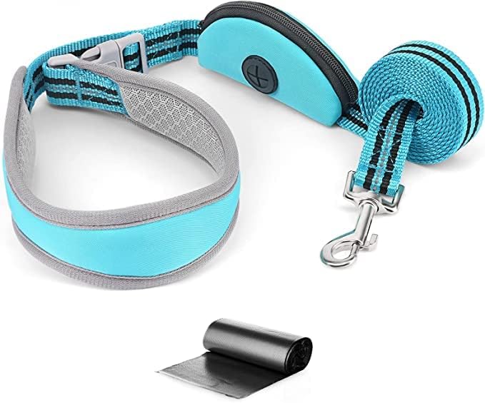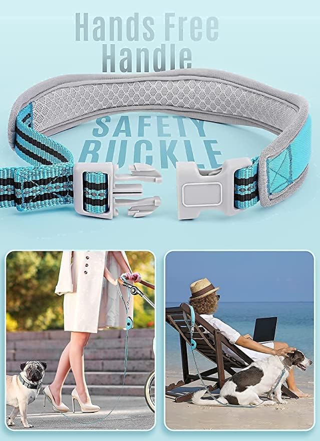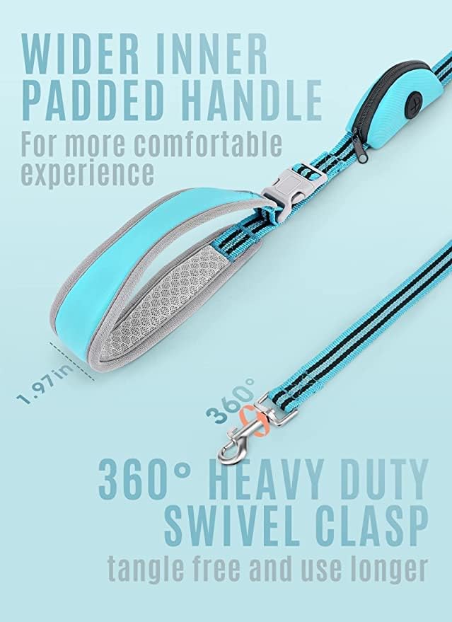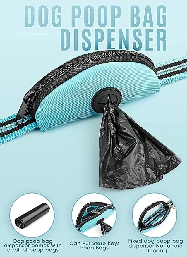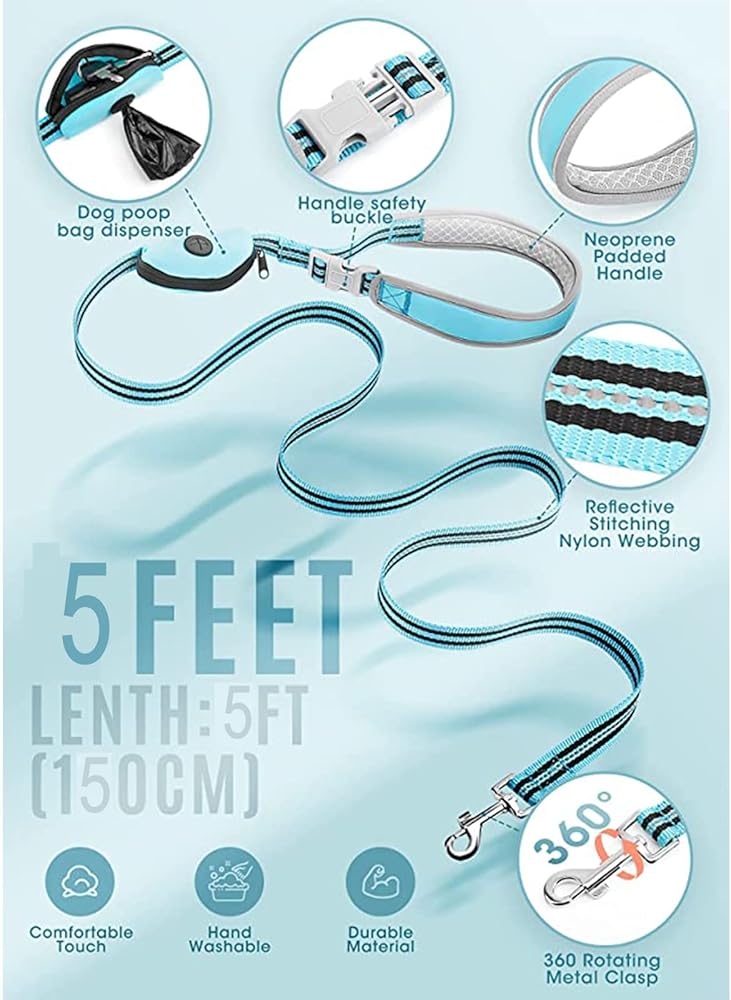 مقود للكلاب بطول 5 أقدام بدون استخدام اليدين للكلاب الصغيرة والمتوسطة، مقود للكلاب من النايلون، مقود عاكس للمشي للكلاب مع حامل حقيبة البراز باللون الأزرق