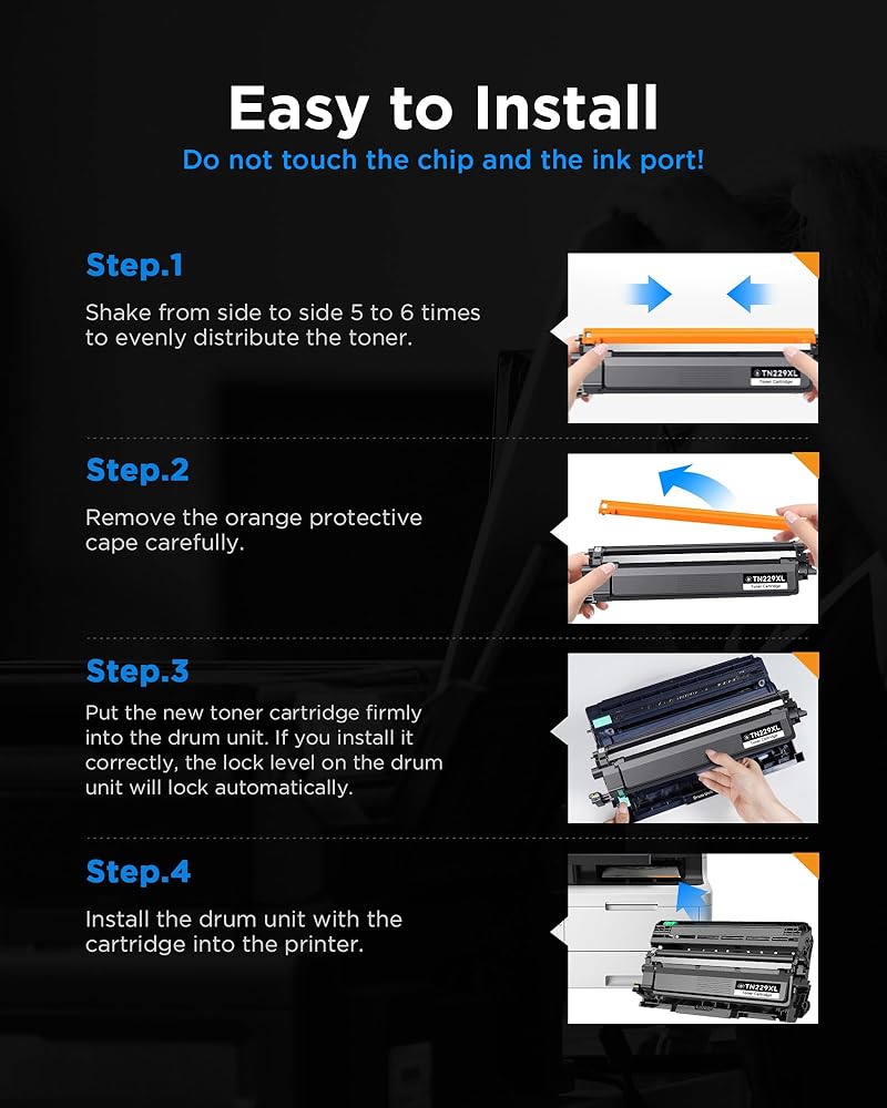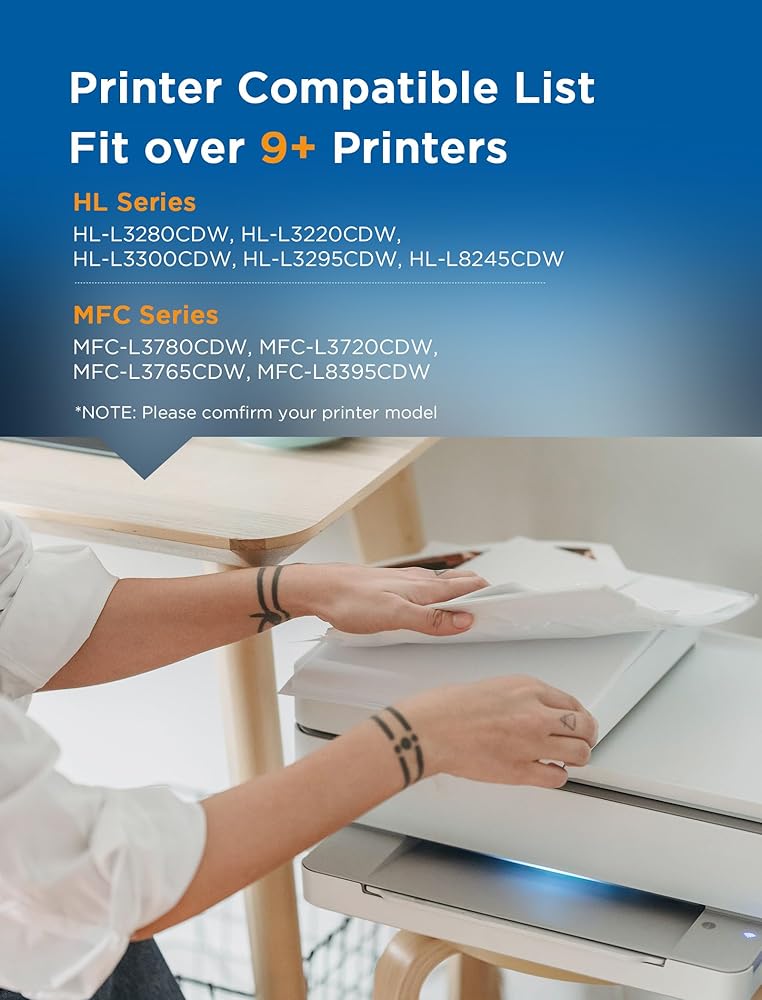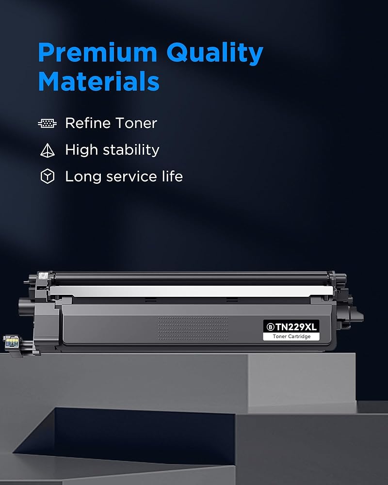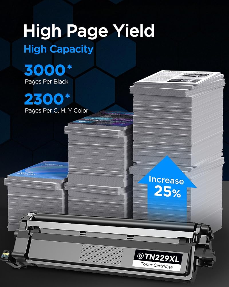 توافق الطابعة: خراطيش حبر TN229XL متوافقة مع Brother HL-L3220CDW، MFC-L3720CDW، HL-L3280CDW، HL-L3300CDW، MFC-L3780CDW، HL-L3295CDW، HL-L8245CDW، MFC-L3765DW، MFC-L8395CDW Laser الطابعات
