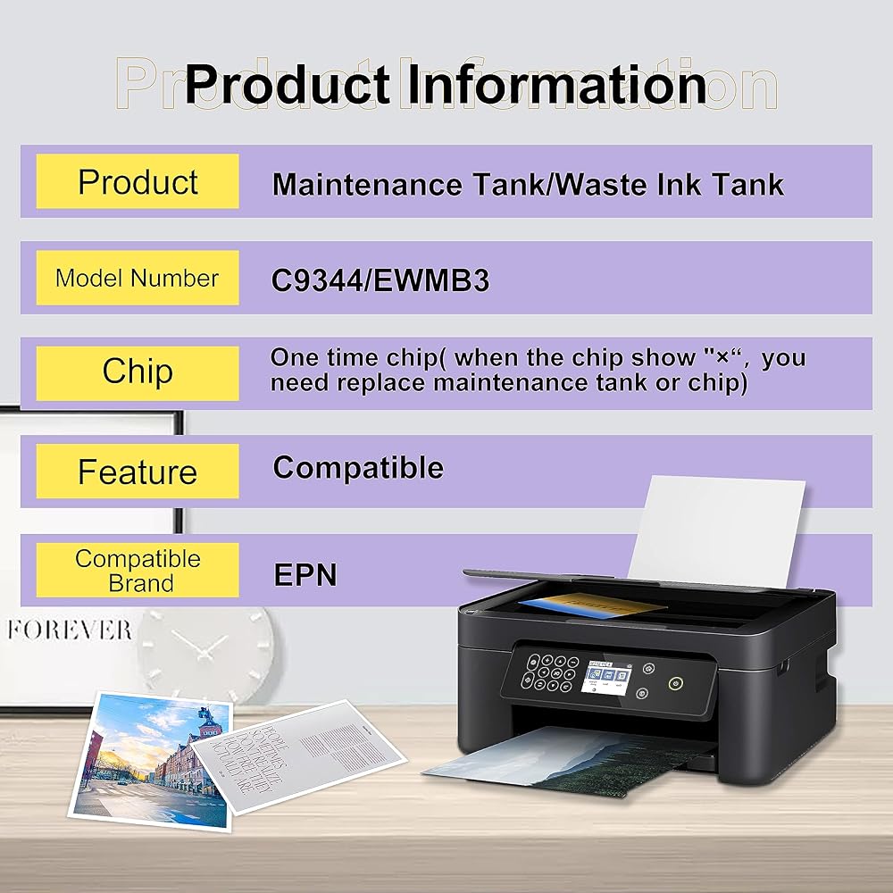 التعرف على الطابعة: يمكن التعرف بسهولة على خرطوشة صيانة Aomya C9344 بواسطة طابعات EcoTank أو Workforce Pro. تعمل هذه الميزة على تبسيط عملية التثبيت وتجعل استخدامها أسهل وأسرع.