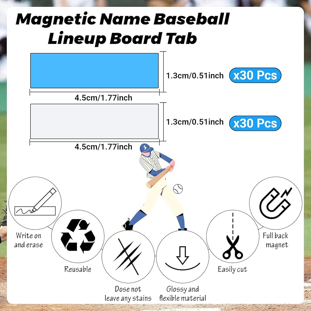 Package Includes:you will receive 60 pieces of magnetic name baseball lineup board tabs,White - 30 pcs. Blue -30 pcs. Different colors mean two groups, abundant in quantity, enough to share, can meet your daily use and replacement needs.