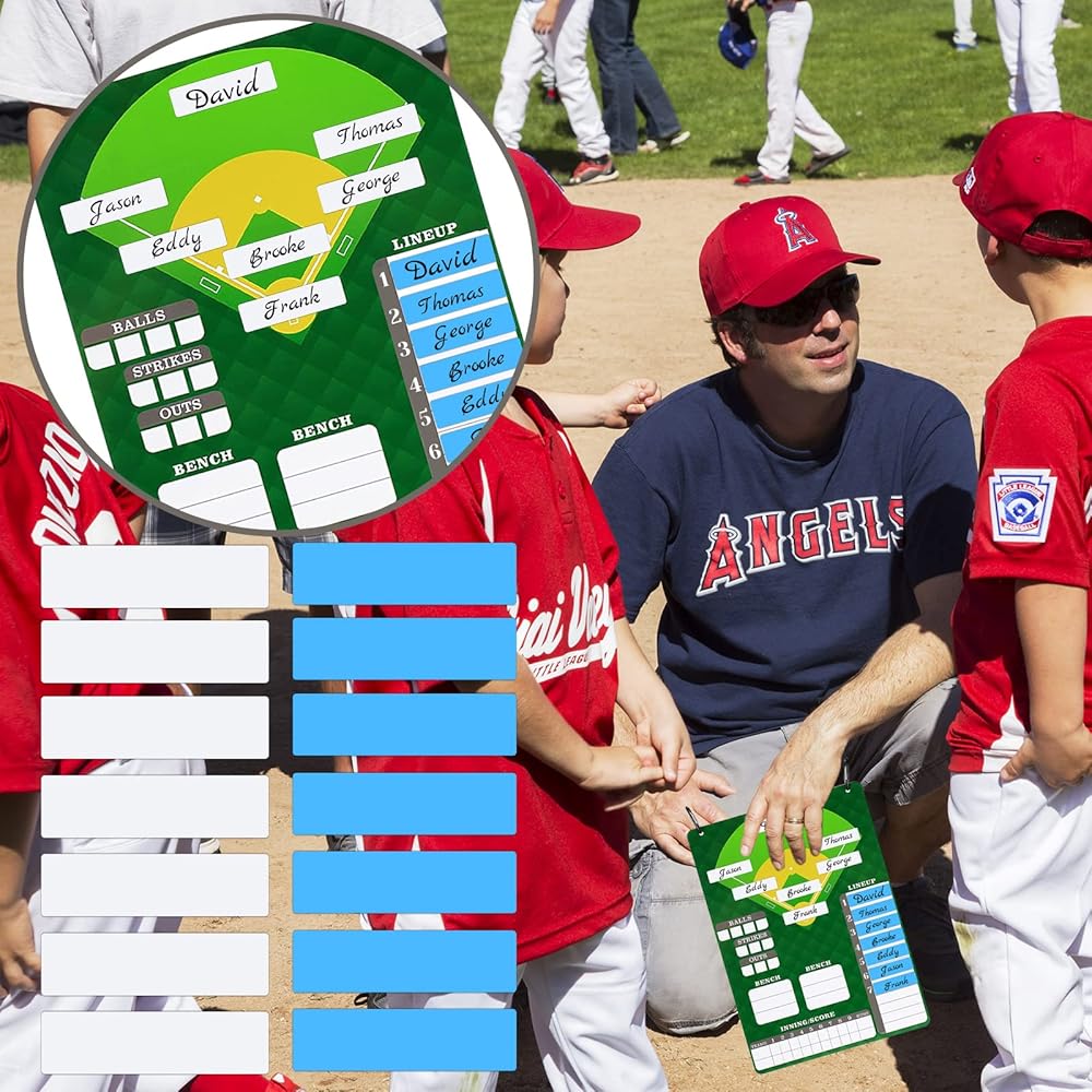 Nice Writing Experience: our baseball clipboard labels are designed with a smooth blank writing surface,You can write fluently with a whiteboard pen as you like, and then paste them on the board