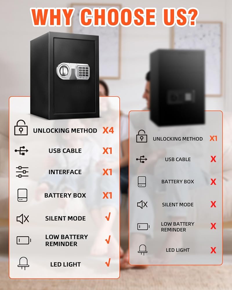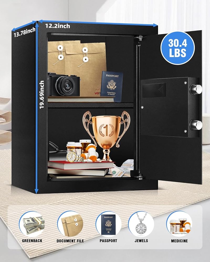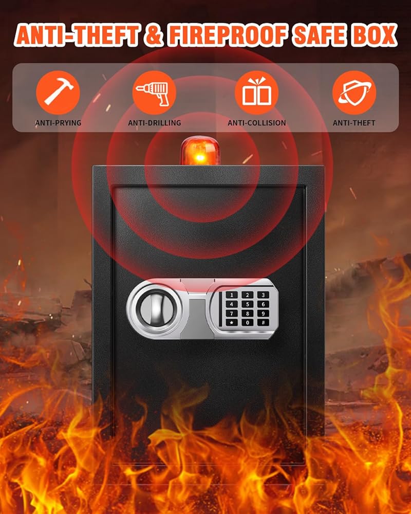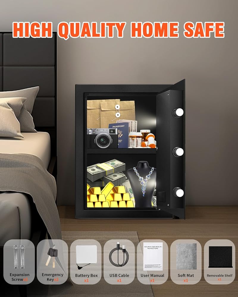 Efficient Organization for Your Valuables: Experience hassle-free organization with the removable inner money drawer and a cash tray thoughtfully designed with five compartments. Accessing your cash and belongings from this cash box with a money tray. Tips:The lock box does not lock itself, you need to lock it with a key to pick it up and carry it by the handle.