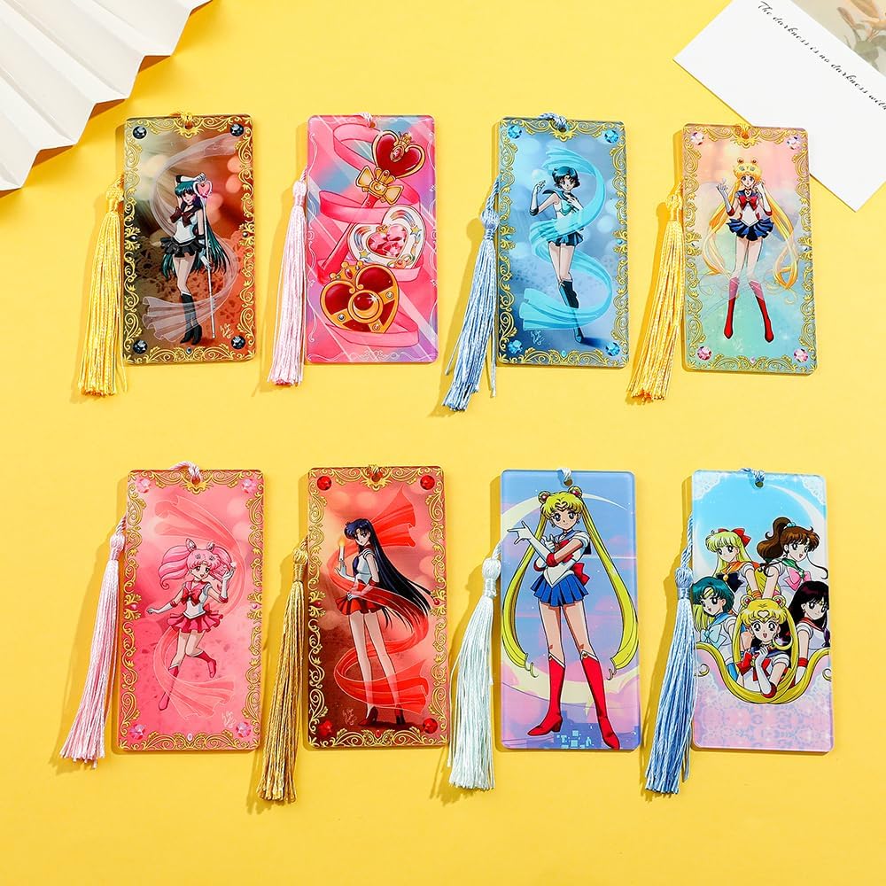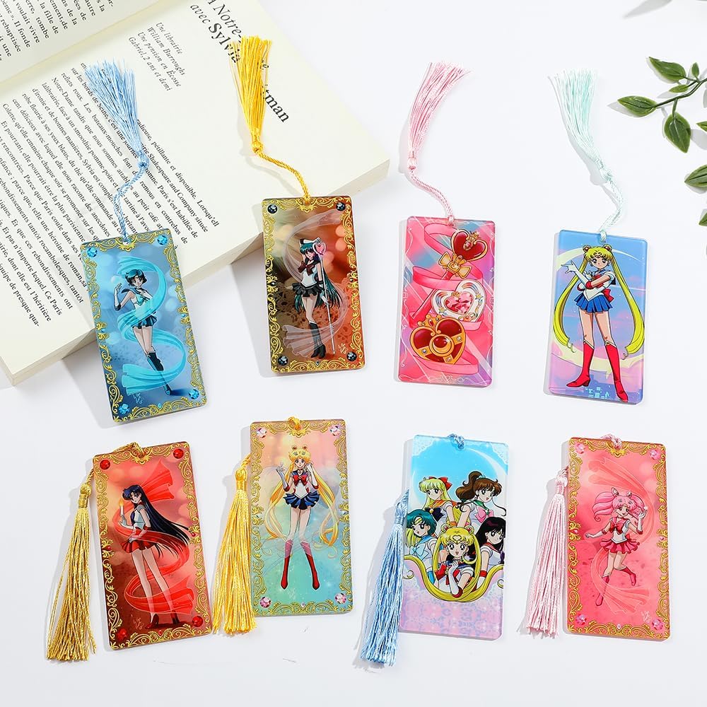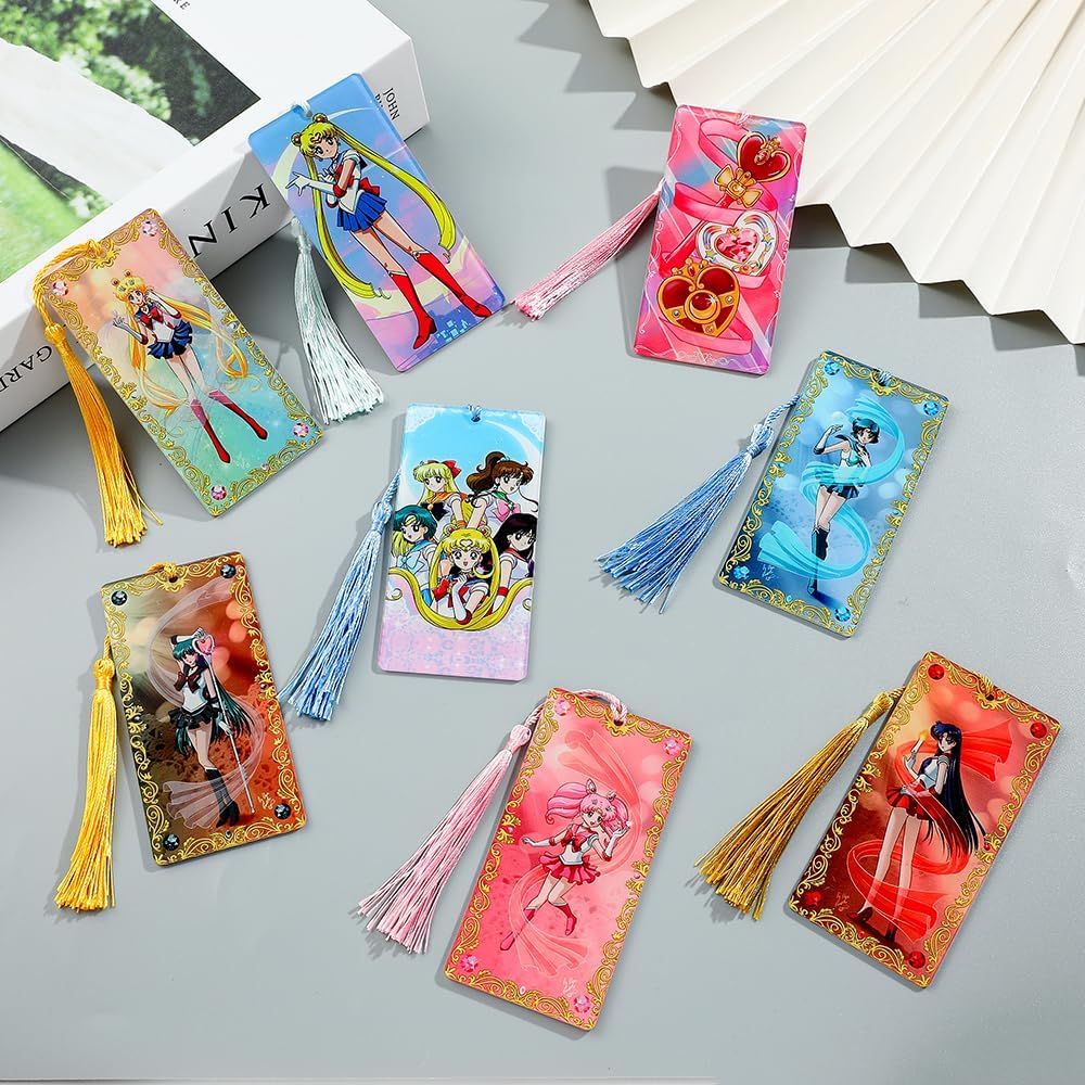 • UNIQUE DESIGN - This product is inspired by the Japanese anime culture of the anime Sailor Moon, they have their own fighting form and change costumes, is a very beautiful bookmark, collectible bookmark, each bookmark has a beautiful tassel .