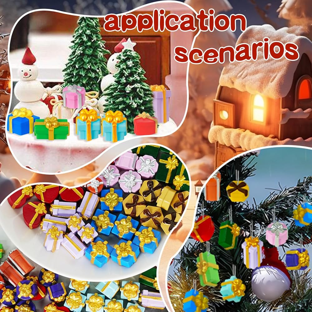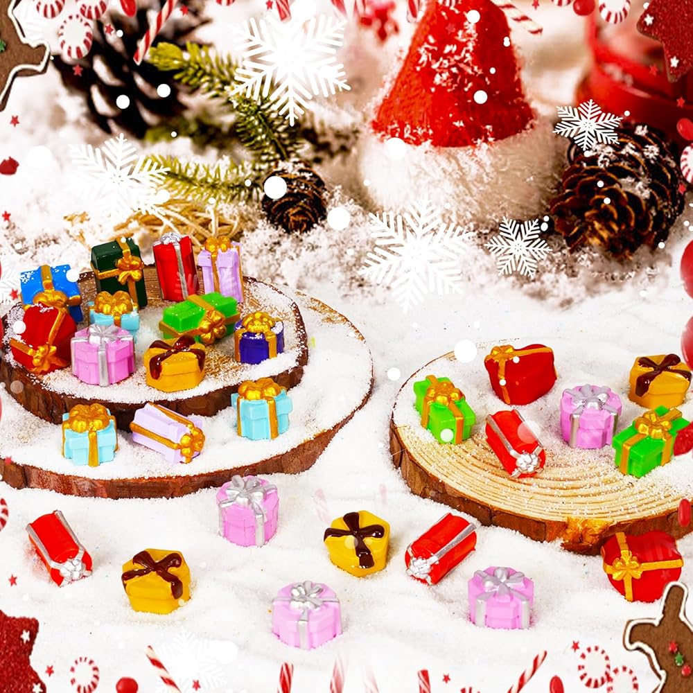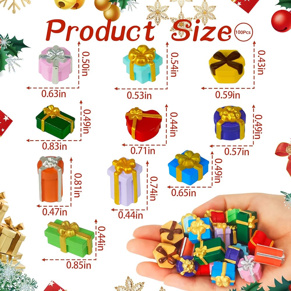 • زينة عيد الميلاد المصغرة: سوف تحصل على 100 قطعة من الراتنج الصغير والرائع في 10 أنماط، كل نمط 10 قطع