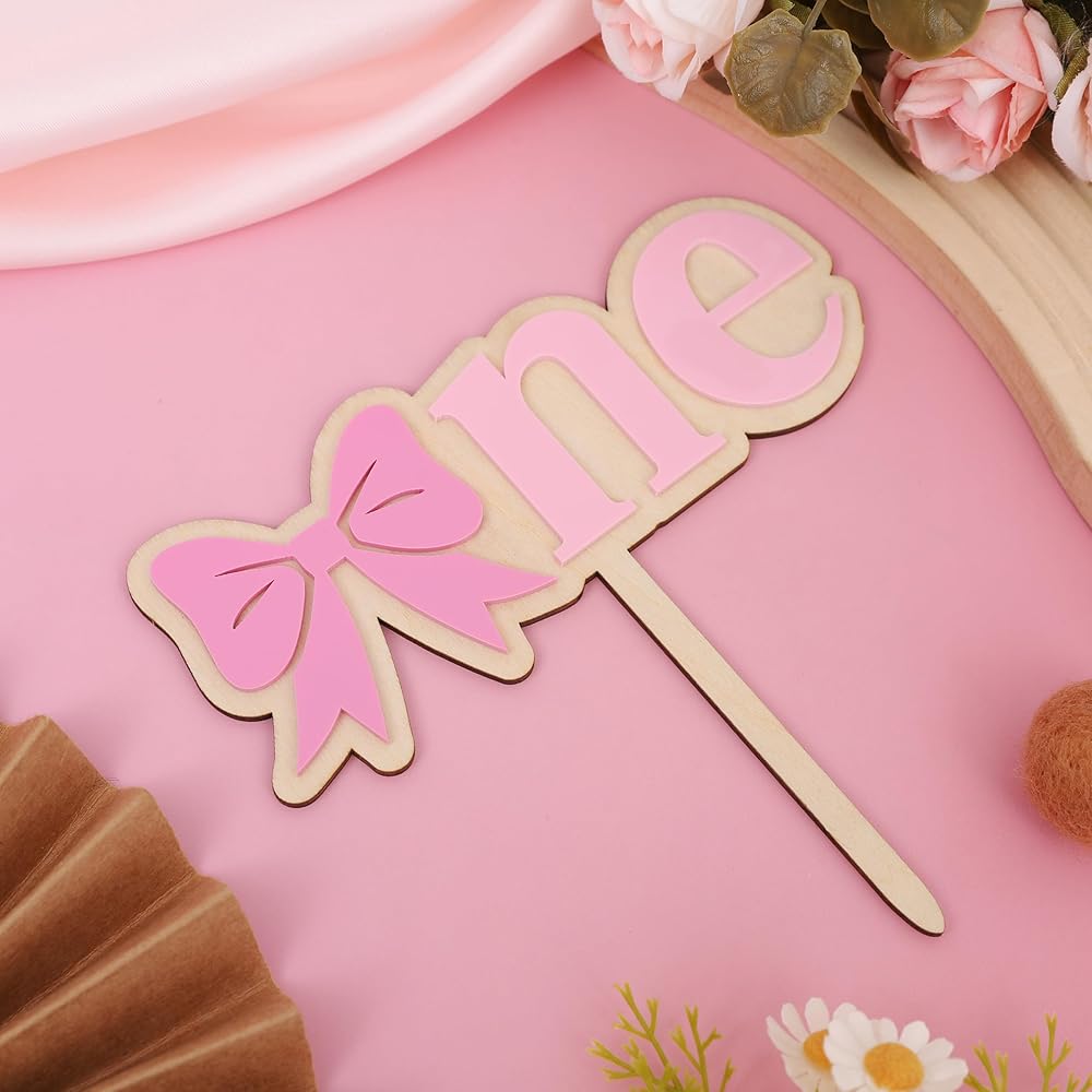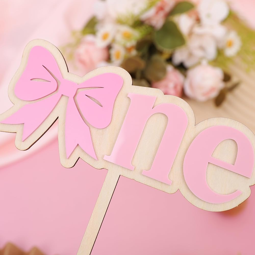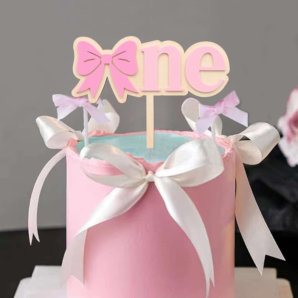 Bow Themed First Birthday Cake Topper - Bow 1st Birthday Party Decor,Pink Bow One Cake Topper,Coquette Party Cake Decor,Coquette Cake Topper