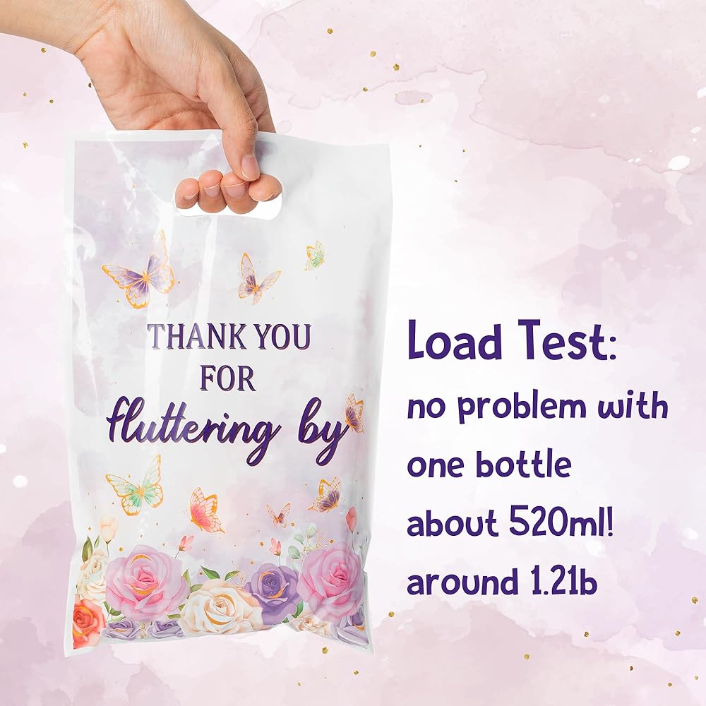 قابلة لإعادة الاستخدام وقوية: حقيبة هدايا بلاستيكية على شكل فراشة أرجوانية مصنوعة من مادة البولي إيثيلين الآمنة وعديمة الرائحة، قوية ومتينة وقابلة لإعادة الاستخدام بحيث يمكنك طيها وتخزينها للحفلات القادمة. سطح أملس ولن يقطع أيدي الأطفال. كما أنها مصممة بمقابض مقصوصة والتي ستكون سهلة ومريحة لحملك.