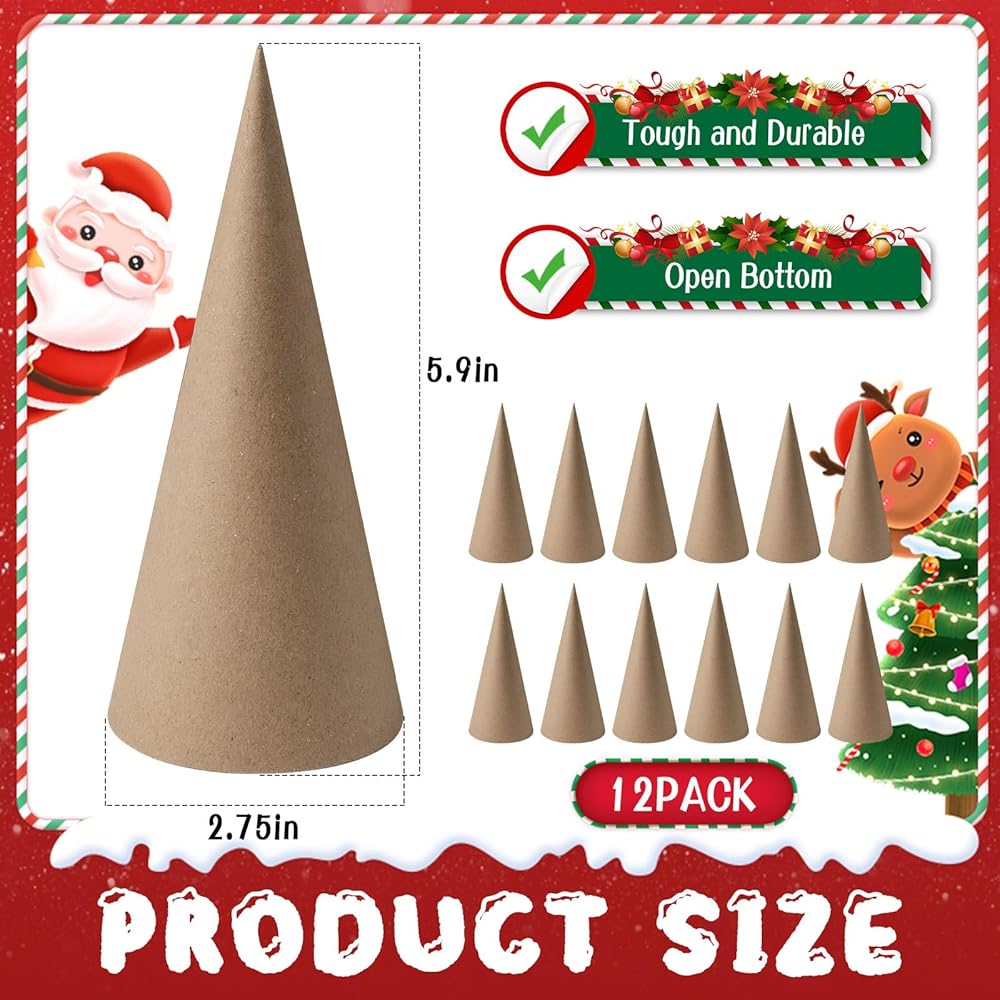 12 قطعة من مخاريط الورق السميكة لعيد الميلاد مع قاع مفتوح، مخاريط حرفية من الورق المقوى السميك لعيد الهالوين وعيد الشكر وعيد الميلاد وشجرة التماثيل DIY وديكورات فنية