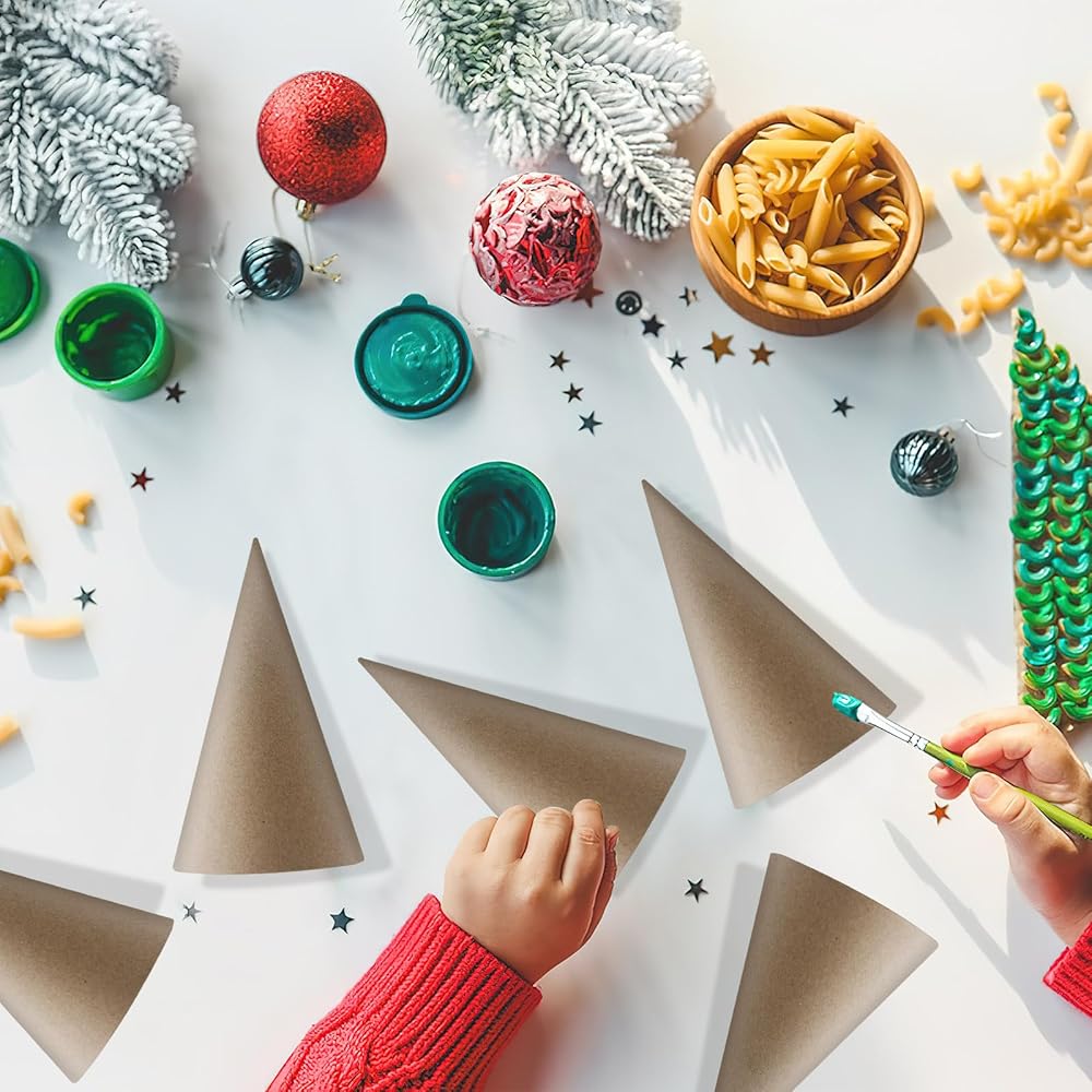 مواد عالية الجودة: هذه المخاريط المصنوعة من الورق المقوى للحرف اليدوية مصنوعة من ورق عالي الجودة، يتميز بسُمك وصلابة جيدة، ويمكن أن تصنع حرفًا مثالية، مما يجلب البساطة والمفاجأة للمشروعات اليدوية لتزيين العطلات.