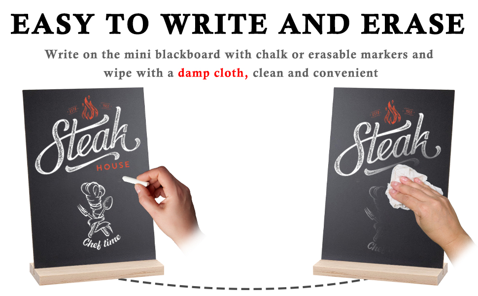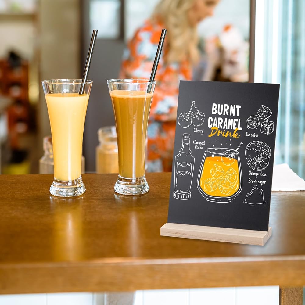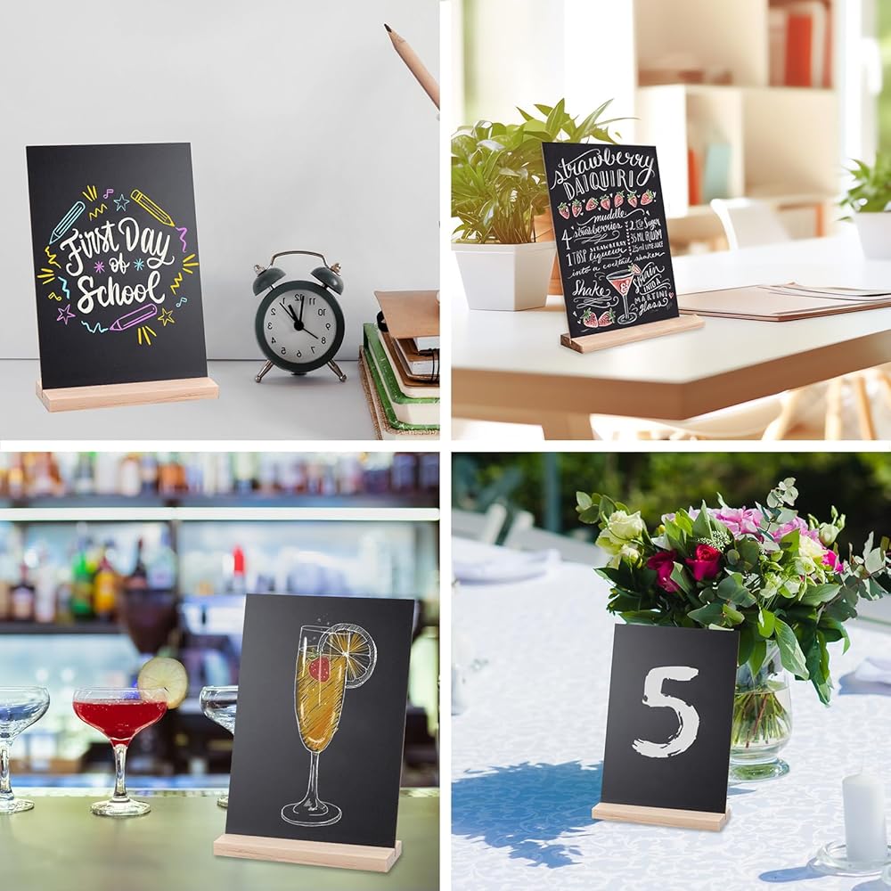 المجموعة الشاملة: توفر هذه الحزمة الشاملة مجموعة من 6 لافتات سبورة على الطاولة مع قواعد خشبية و7 أقلام طباشير سائلة بألوان مختلفة (امسحها بقطعة قماش مبللة بعد الاستخدام). يمكن عرض لافتات السبورة الصغيرة متعددة الاستخدامات هذه أفقيًا أو رأسيًا، مما يوفر لك خيارات واسعة لعرض رسائلك.